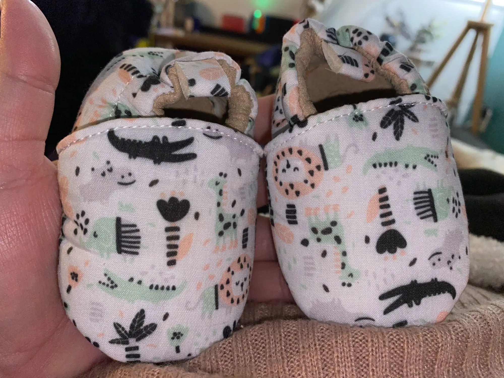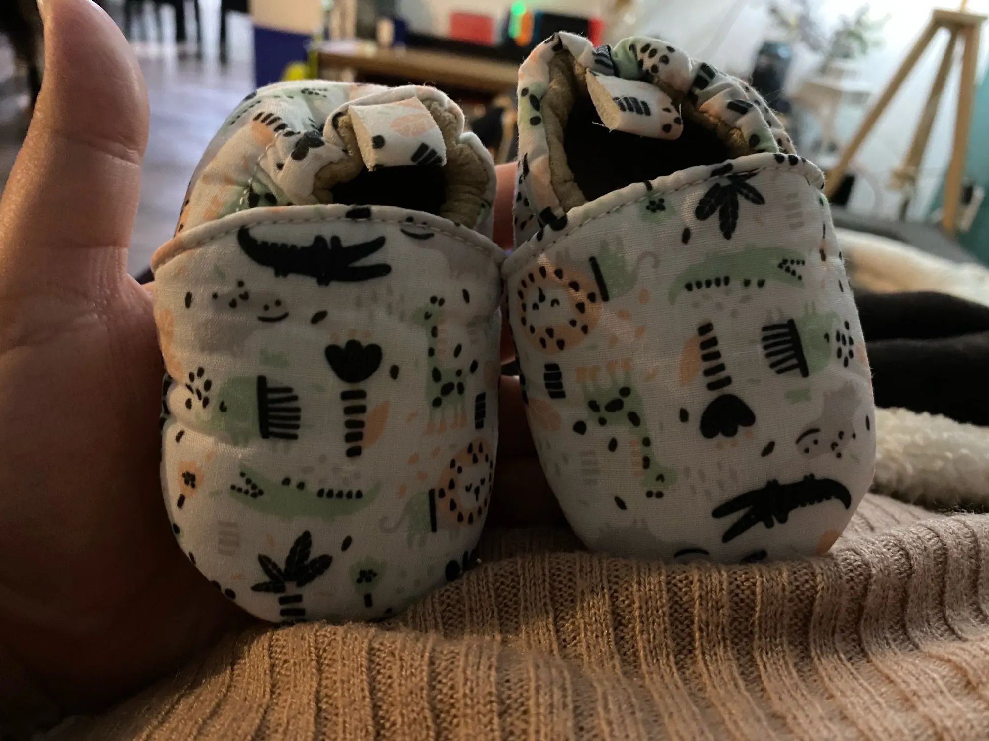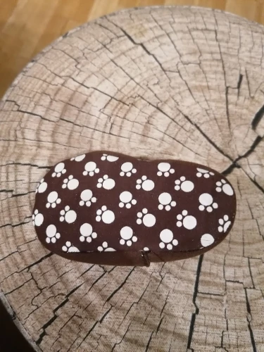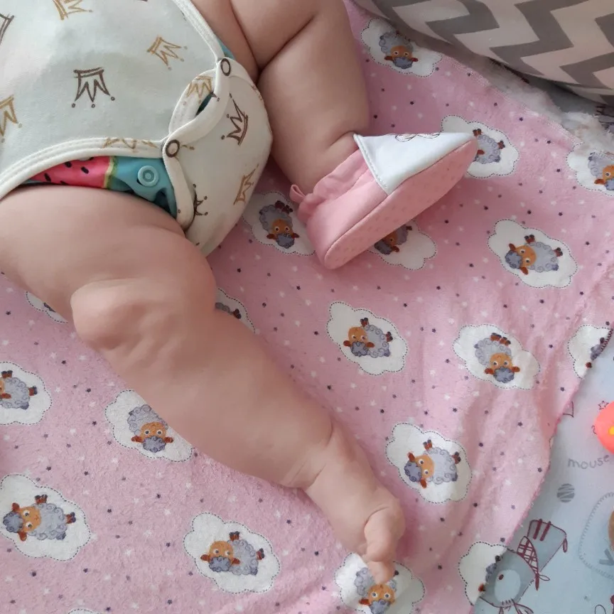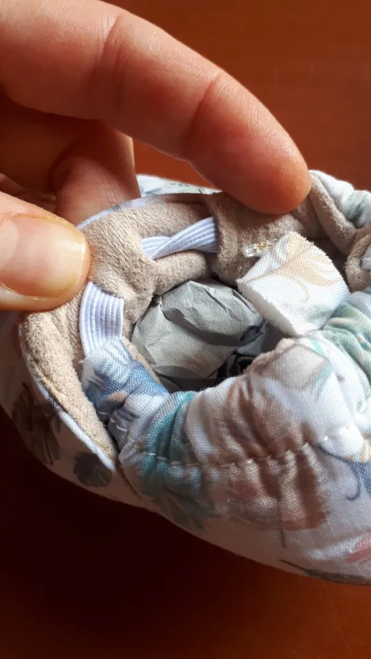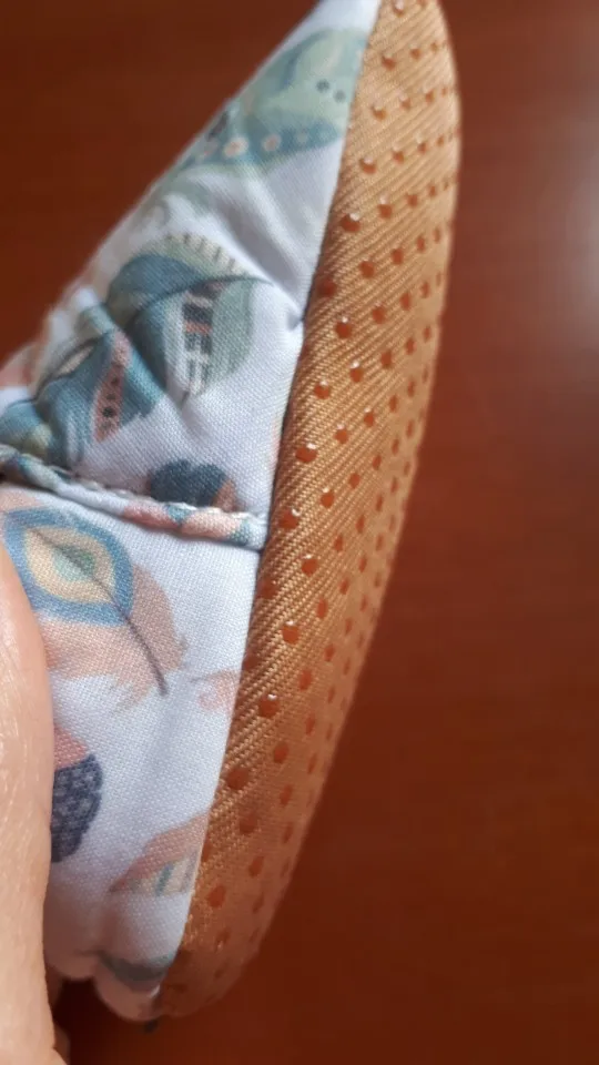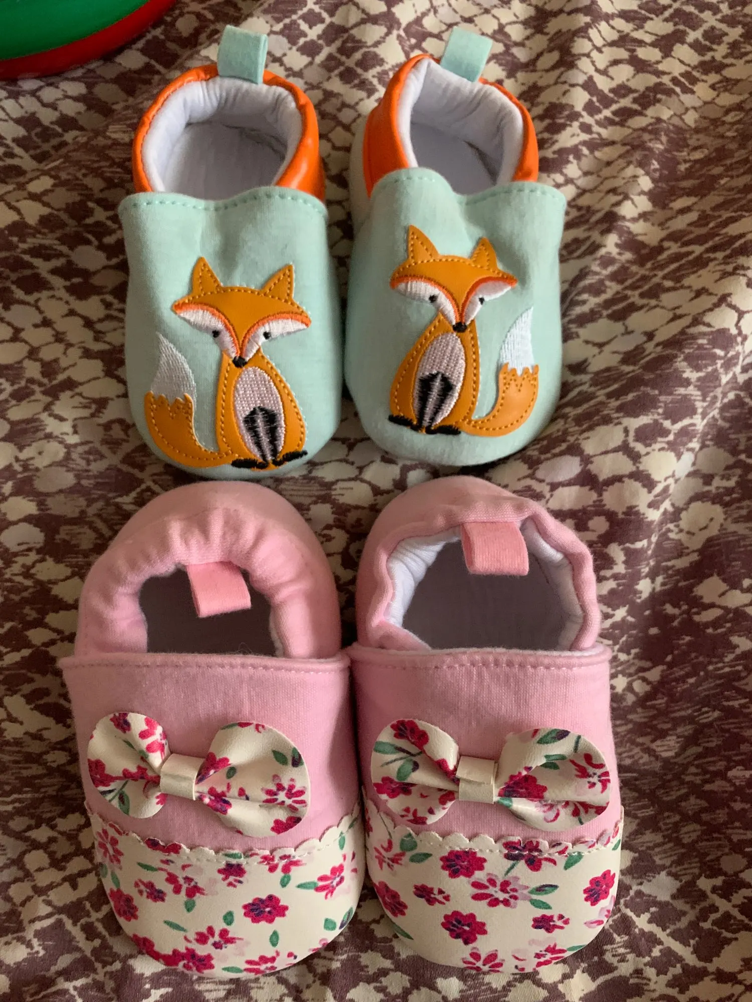 красивые тапочки, размер 5 подошел ребенку 1.3 года, ножка 12см. Но... Тапки пахнут химией, ножки вспотели спустя пару минут, как померили! На голую ногу не вариант. Если только на носочек и по холодному полу. Еще почему-то подошва одного тапочка изначально грязная, как только открыла. Все бы ничего, но ноги очень сильго вспотели, вряд ли дочка будет носить.