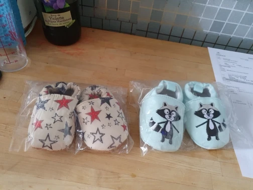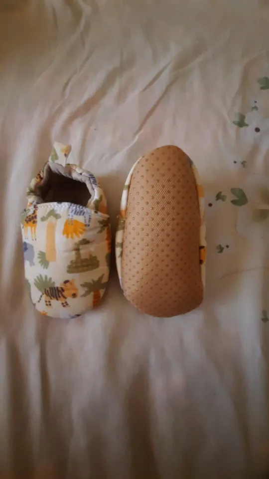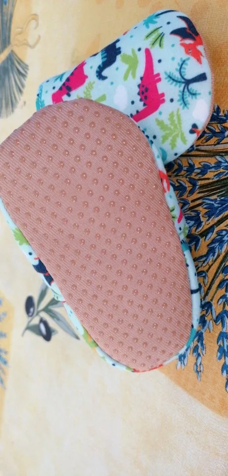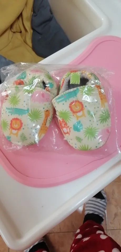 Она восхитительная, чтобы дать идею, мой сын носок 20, и я получил Размер 5 Только с нижней стороны, тапочки не прилипают к полу, поэтому скользят, стыдно!
