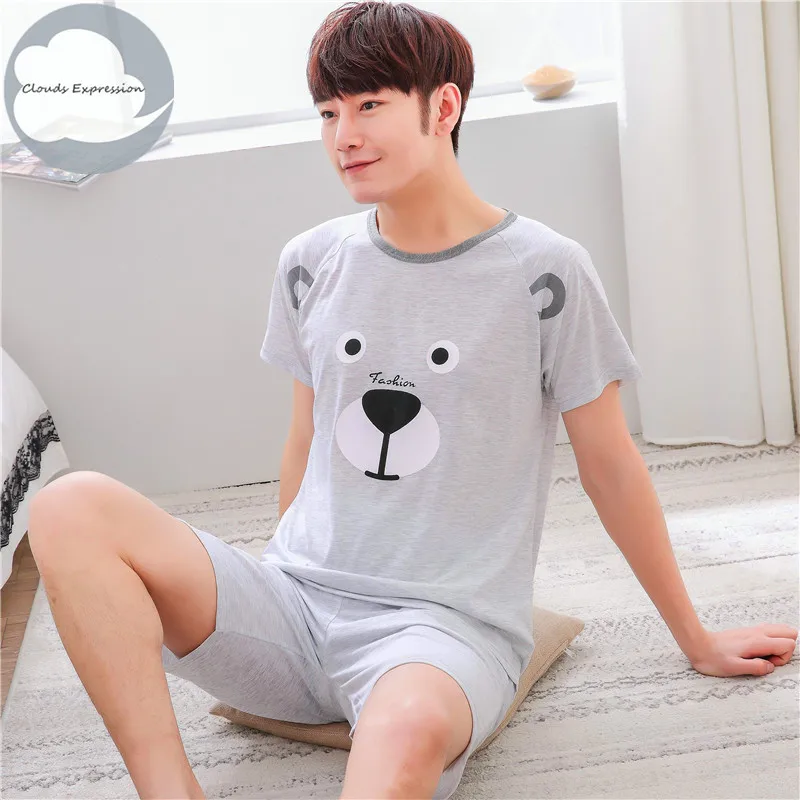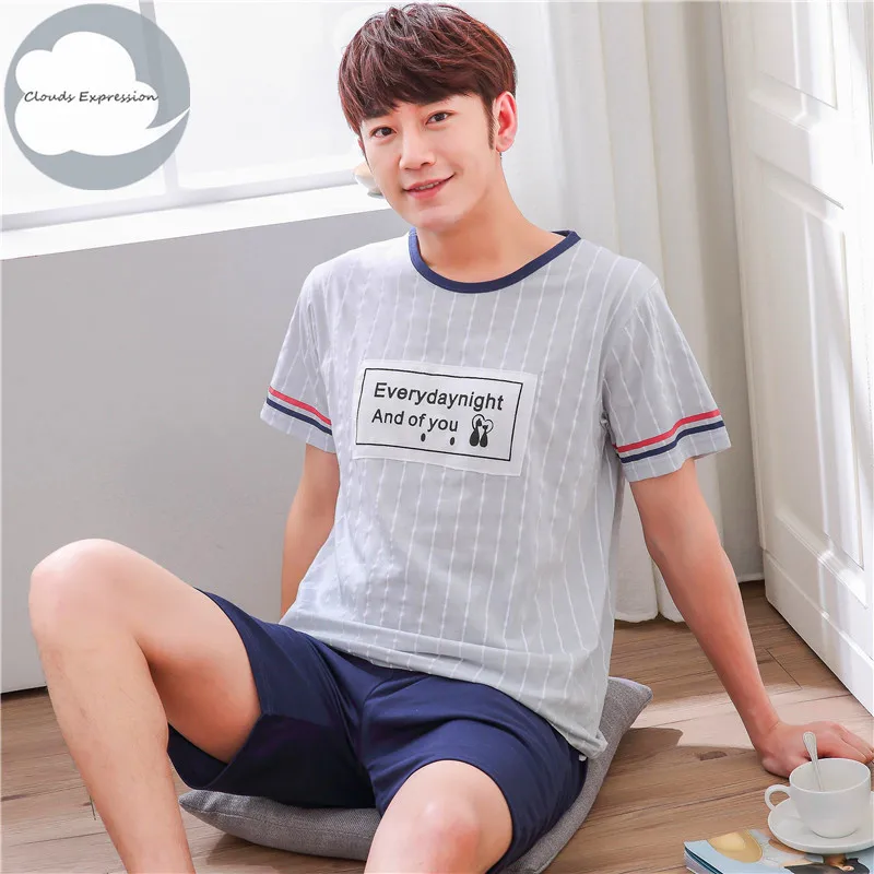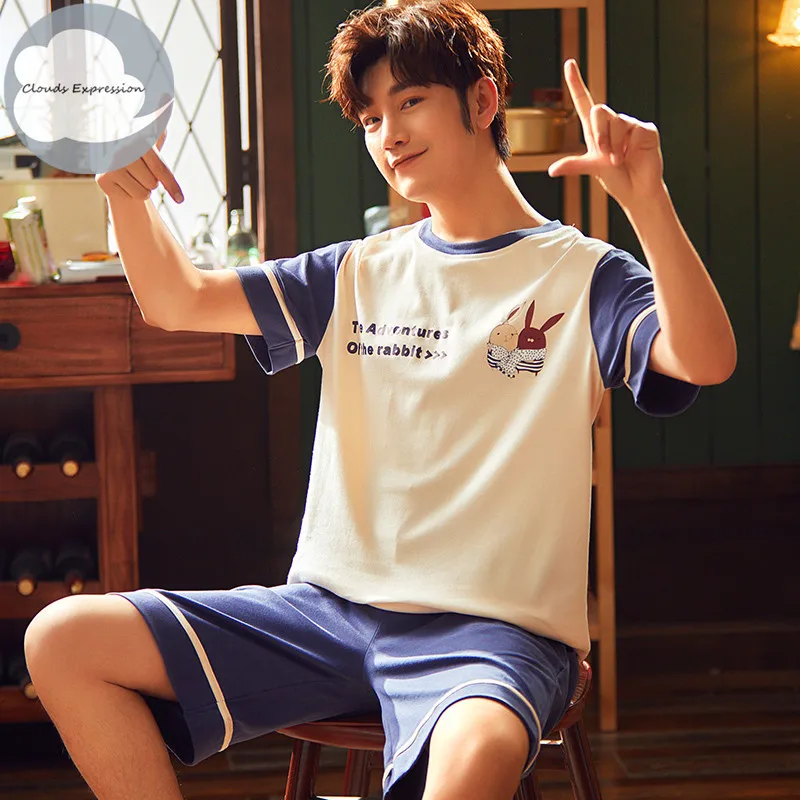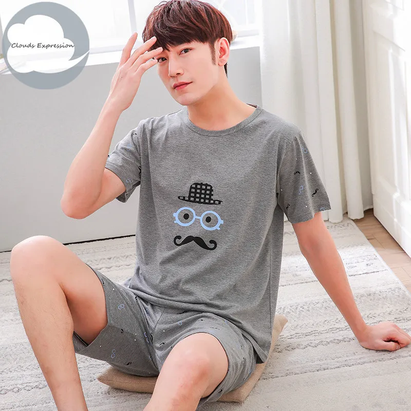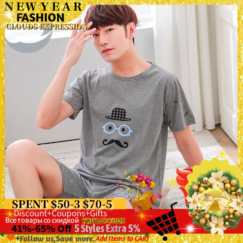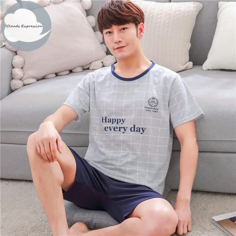 Мужская пижама с коротким рукавом, повседневная Хлопковая пижама размера плюс XXXXL