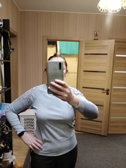 Кофта как на фото, но почему-то с размером прогадала, в прошлый раз этот же размер(2ХЛ) был как раз, а этот раз этот же размер велик