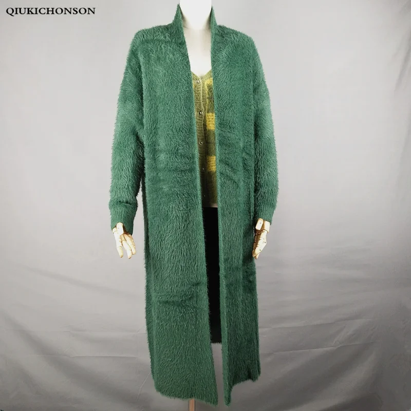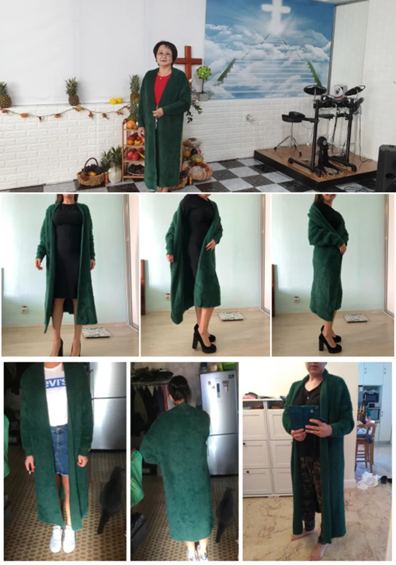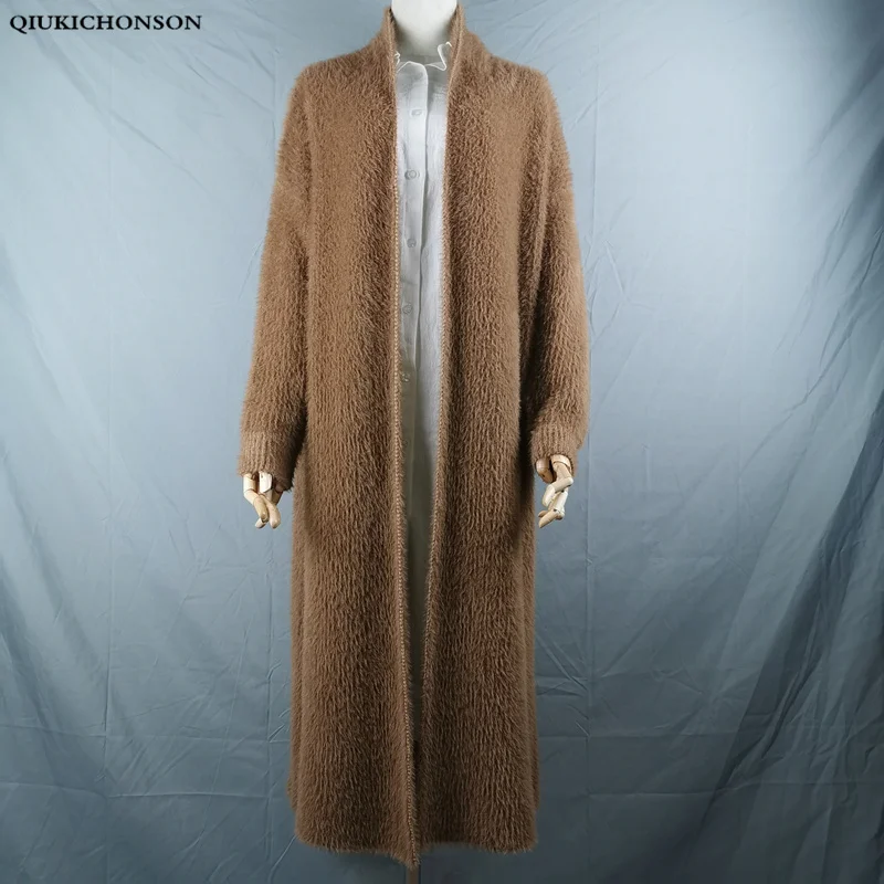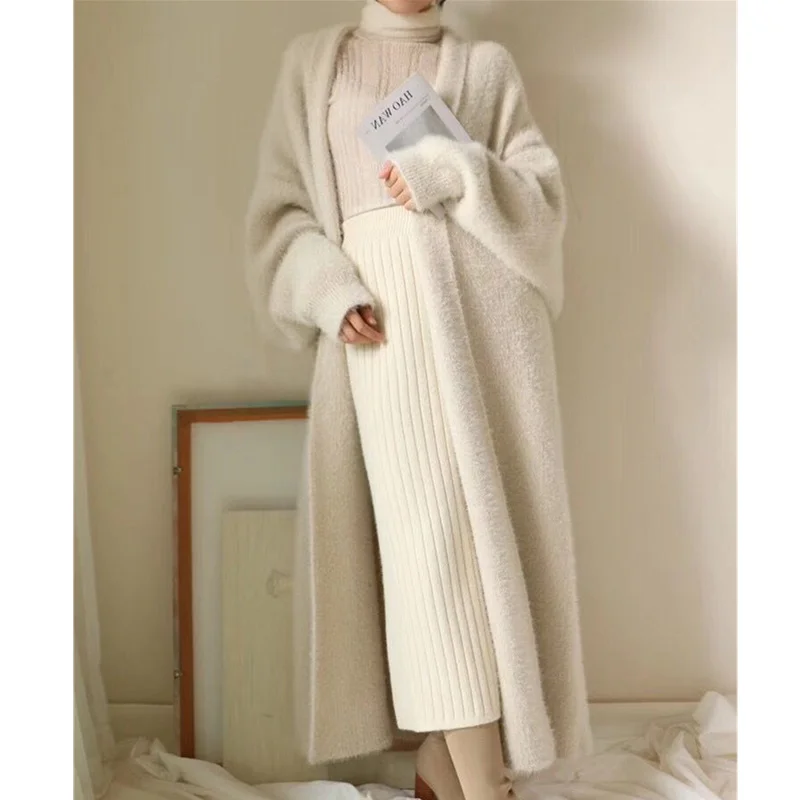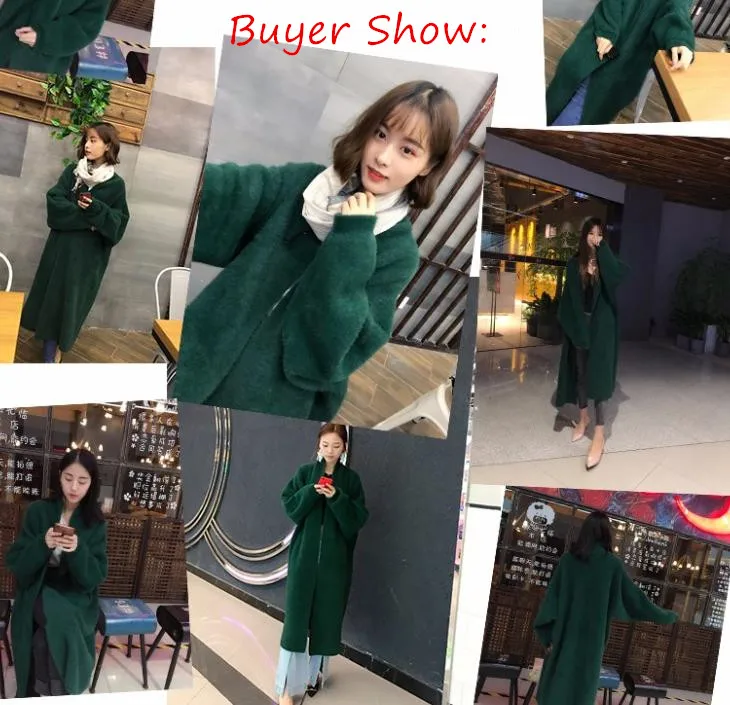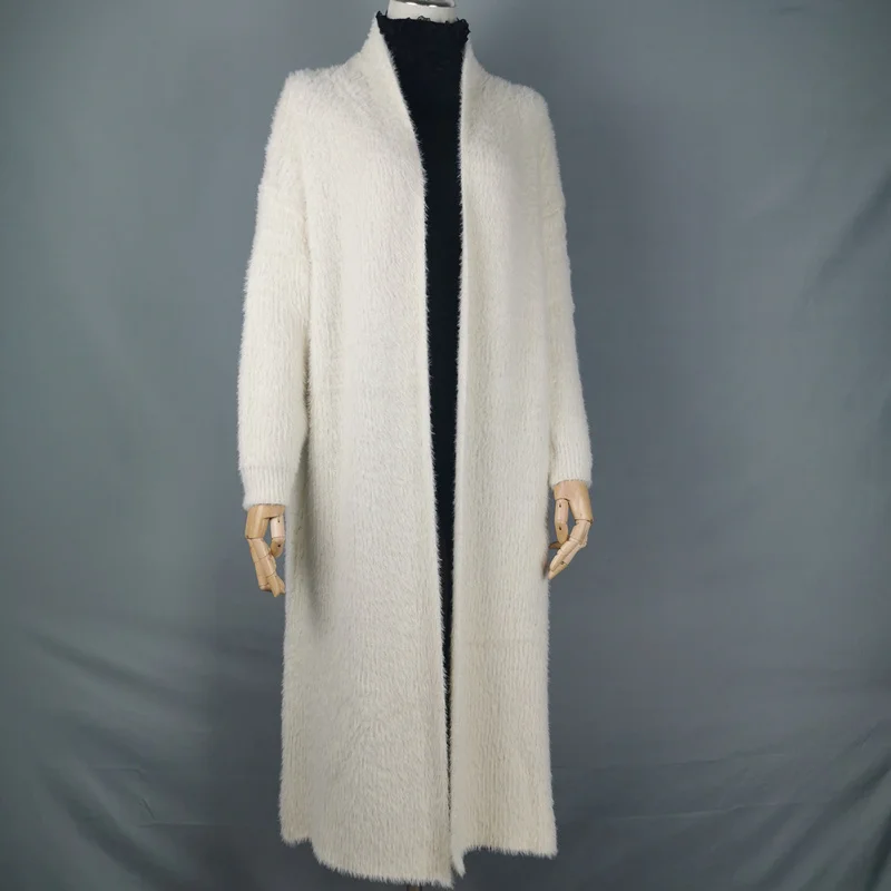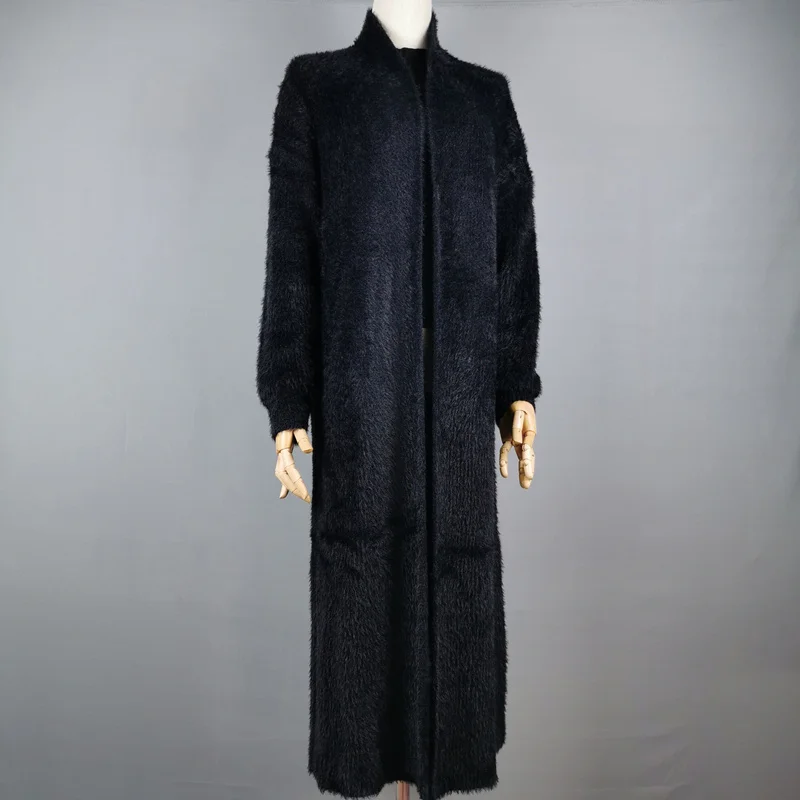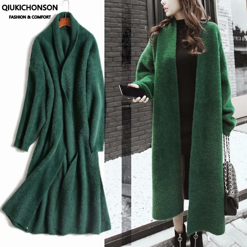 Зимнее пальто из кашемировый свитер, кардиган синтетической норки для женщин, вязаный длинный кардиган с рукавами летучая мышь, толстые пушистые свитера, размера плюс