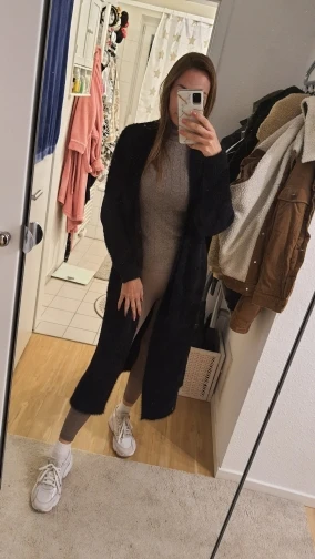Кардиган замечательный , мягкий , сидит окуратно . Я очень довольна . Продавец молодчинка , всё очень хорошо , радость переполняет . Рекомендую . Большое спасибо .