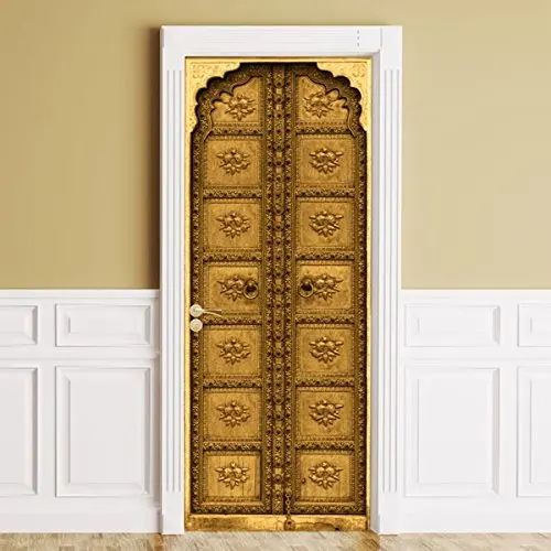 3D индивидуальные яркие золотые входные двери Настенные обои фотообои настенная печать Наклейка Настенная фотообои самоклеющаяся дверная пленка