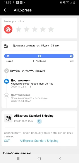 какой отзыв?я делала заказ в ноябре месяце,часы отправили и они зазтряли в сортировочном центре в Китае,и все....ни туда ни сюда с 24 ноября...в декабре открывала спор,посылала скрины...безполезно!ждите мол окончания срока защиты,ну вот он закончился и что?товар так и находится в Китае с 24.11...я еще такой поразительной наглости не видела..вышла у тебя накладка?ок))верни деньги..и служба типа поддержки такие же..посмотрите скрин,часы с 24.11.20 в сорт.центре в Китае...