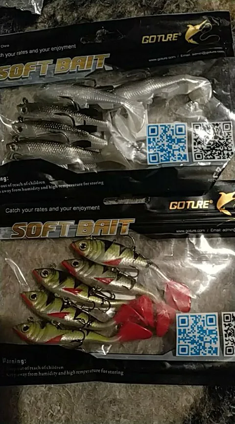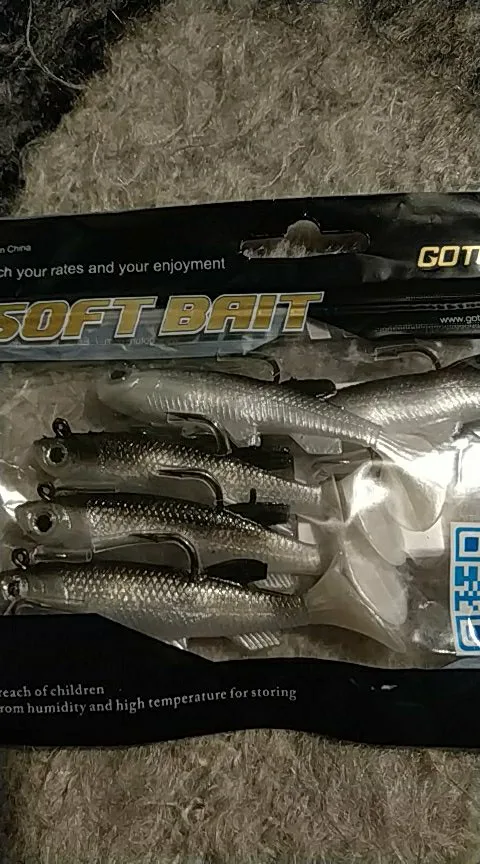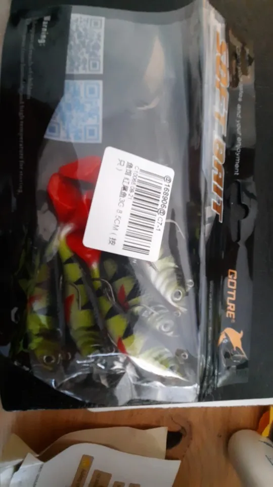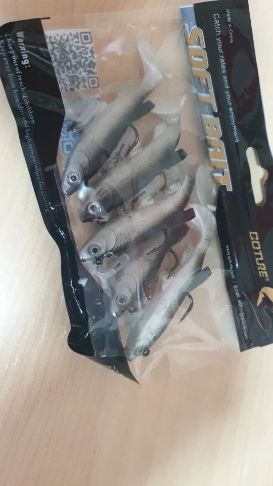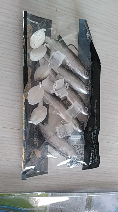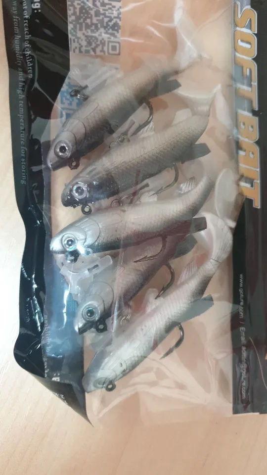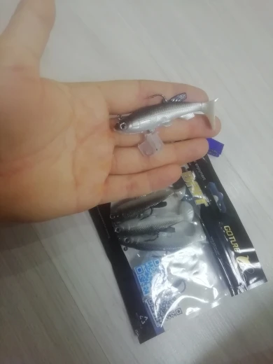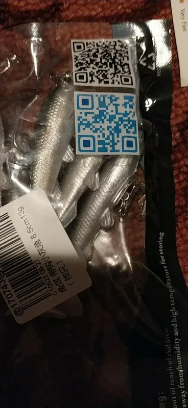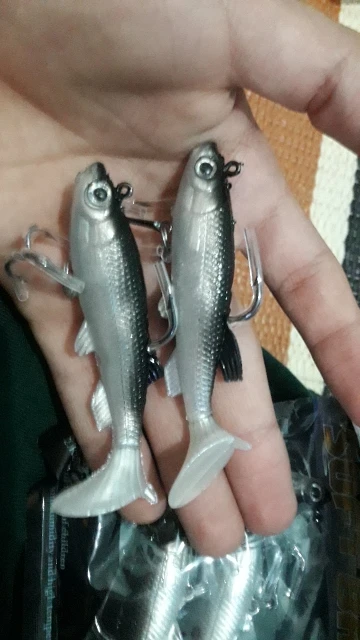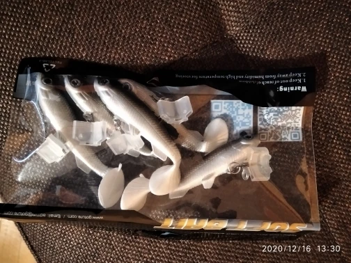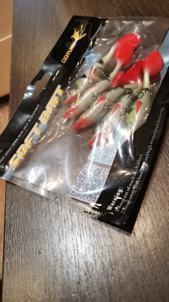 Доставка в Московскую область месяц. Силикон ну О-очень вонючий и жёсткий, вяглядят очень маленькими. Игра никакая, идут скрюченные боком из-за жёсткости силикона. Хвост рыбки спецом пережат, чтобы типа была игра... Опустил рыбки в кипяток на пару минут и растягивал, пока вот-вот порвутся - стали гораздо мягче и чуток длиннее, сразу появилась игра приятная глазу! Заводные кольца на выброс, все разжатые из мягкого металла. Тройники тоже на замену, одинарник вроде острый, его не поменяешь.