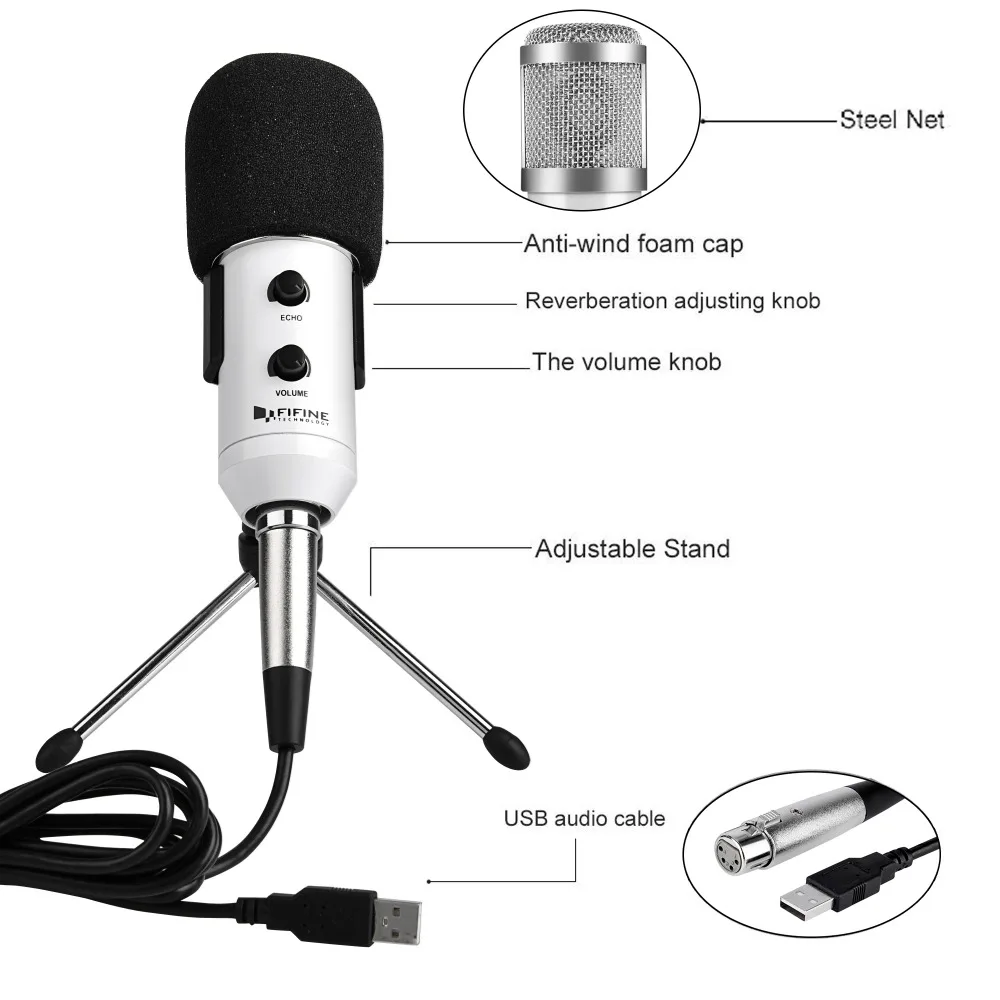 USB-микрофон Fifine, конденсаторный микрофон Plug Play для ПКкомпьютера, подкастинг, одна линия, для самостоятельного обучения (K056)