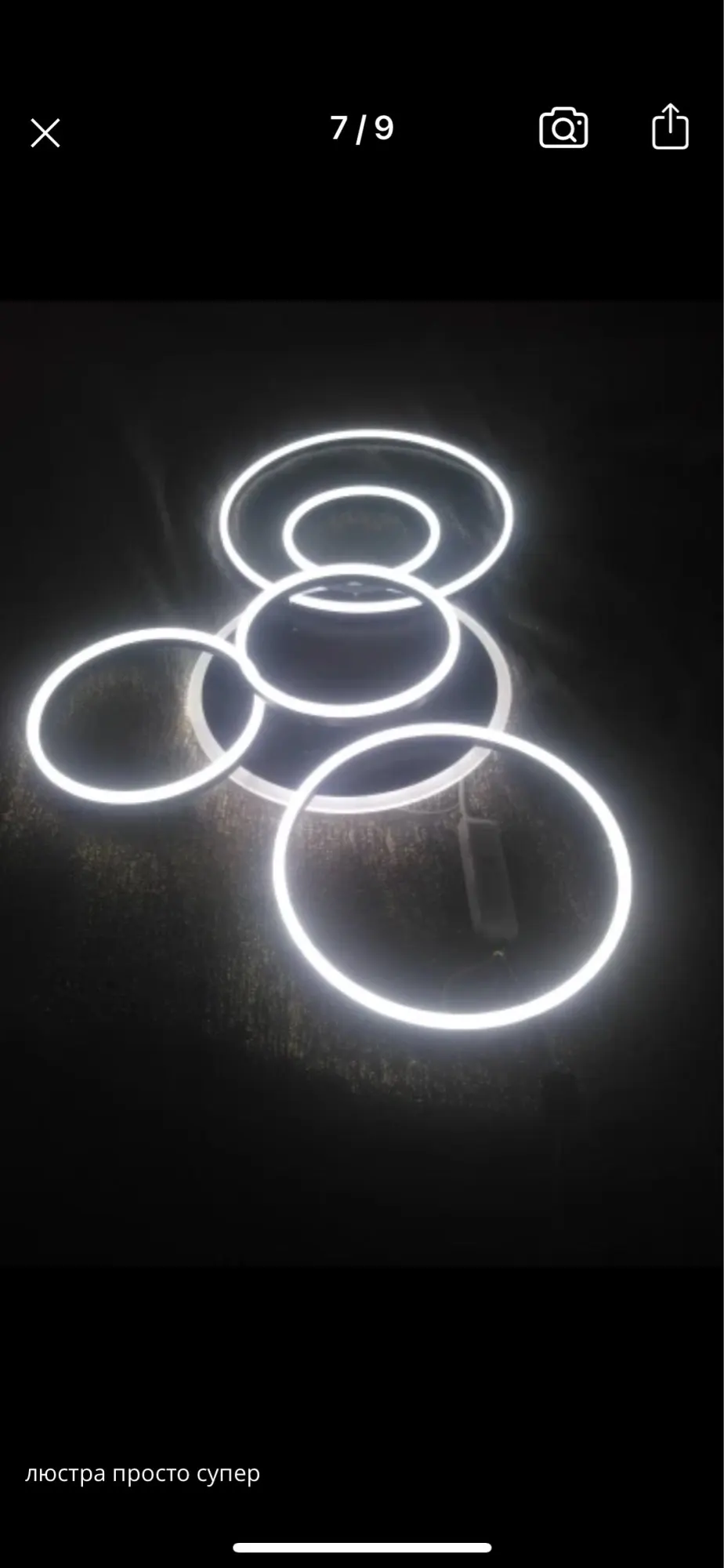 Шла посылка, конечно, очень долго, месяца полтора, и то Дпд доставку переносил 2 раза. Принёс курьер домой. Люстра супер, очень нравится, фото не передаёт всей красоты. 5 колец хорошо освещают комнату в 12 квадратов. Опять же фото не передаёт яркость освещения. Упакована отлично. Продавец общительный, на вопросы отвечал оперативно. Взяли с пультом и изменением цвета, поставили нечто среднее по теплоте освещения. Буду смотреть теперь в другие комнаты.
