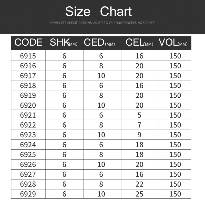 Диаметр хвостовика: прибл.1/4Дюйм (6 мм)