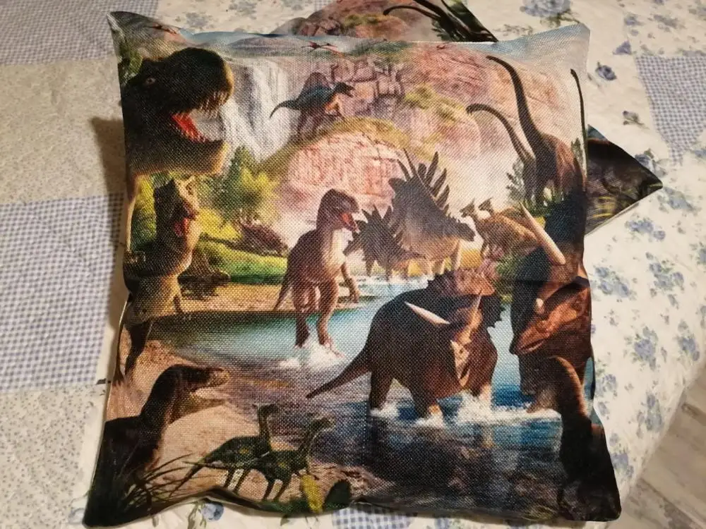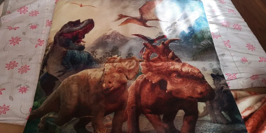 Отличная льняная наволочка! Цвета яркие. Покупала племяннику, он обожает динозавров. Надеюсь, будет доволен. Спасибо продавцу! Доставка быстрая. Трек отслеживался.