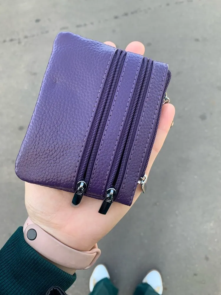 Кошелёк удобный, компактный. Всё замки рабочие. Нитки нигде не торчат. Цвет соответствует описанию.