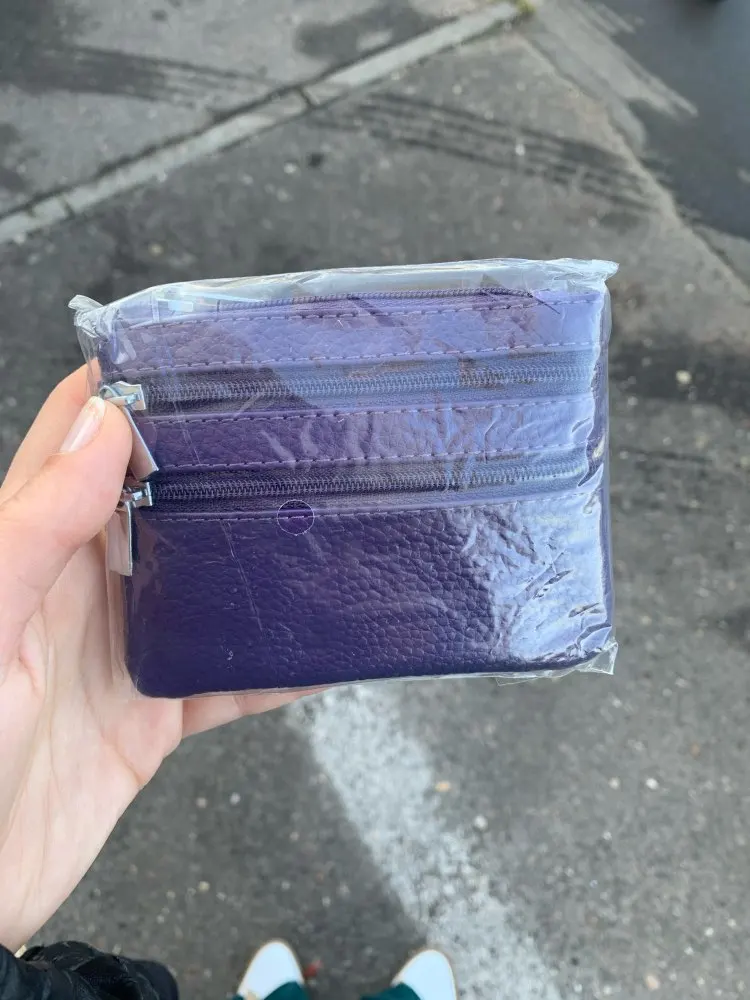 Малюсенький кошелёк) мягкий, милый, приятный, без ниток и запаха. Очень удобно для дамских сумок небольшого размера. Доставка месяц до МО. Не отслеживалась.