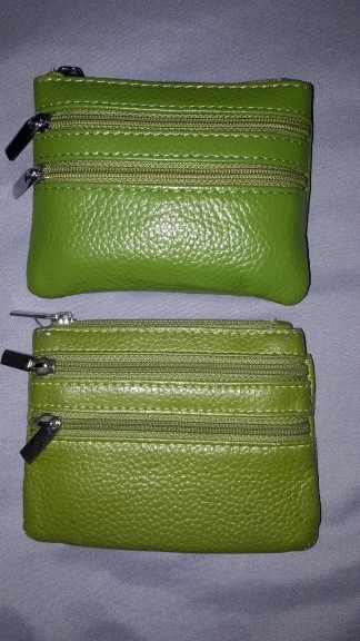Супербыстрая доставка. Кошелёк заказан 29.09 - получен уже 06.10. Доставка молниеносная. Качество кошелька отменное. Очень похоже на кожу. Размеры кошелька: 11/8см. Цвет приятный болотно-зеленый. Молнии качественные, мягко ходят. Много кармашков. Есть цепочка с колечком для ключей. Купюры входят сложенные напополам. Подклад хорошо прошит. Сочетается по цвету с кожей. Нет торчащих нитей. Миниатюрный, стильный кошелёчек. Спасибо продавцу! Товар качественный.