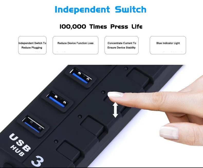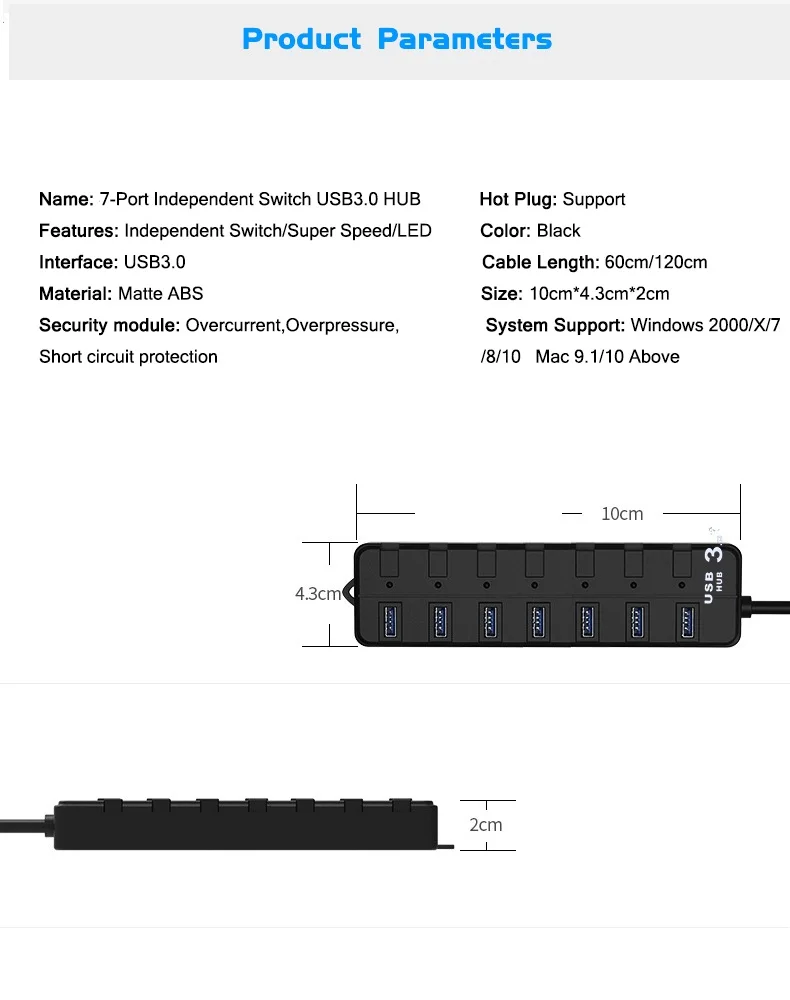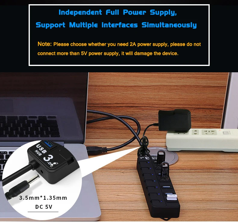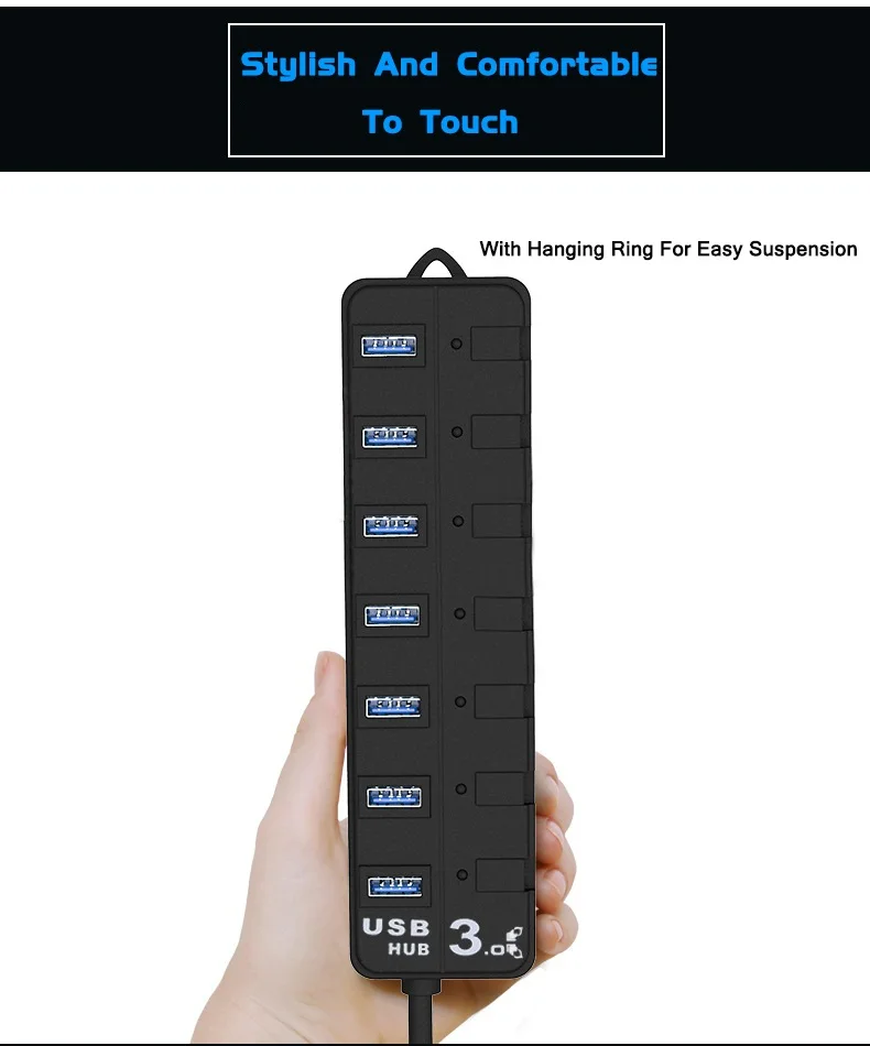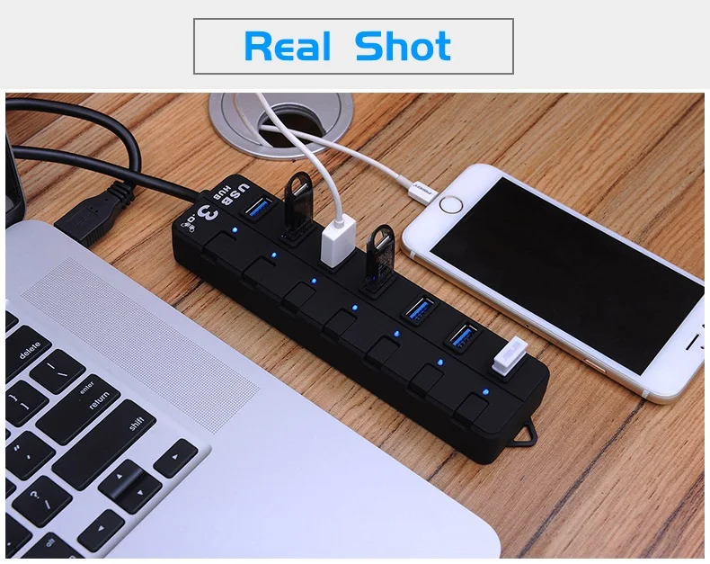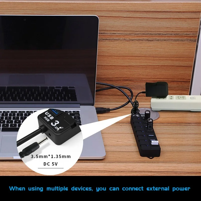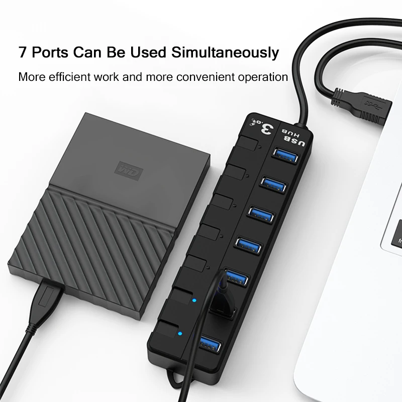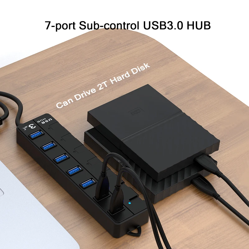 Подконтрольный 7-портовый концентратор USB 3,0 60 см120 см 5В 2А источник питания одновременное использование жесткого диска USB3.0 сплиттер для рабочего стола ноутбука