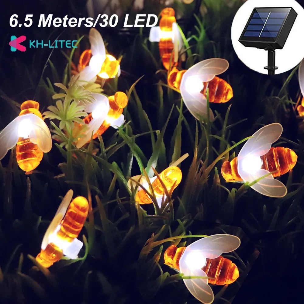 KHLITEC 6,5 м солнечный светильник s String 30 Led Honey Bee Shape на солнечных батареях Сказочный светильник s для наружного сада Забор летний ночной Светильник украшение