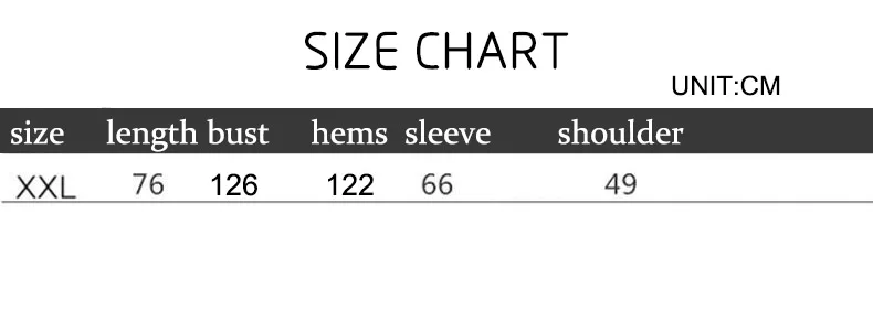 Примечание:Вы можете измерить куртку, которую вы носите сейчас, и длину груди для справки, и погрешность 1-3 см является нормальной.