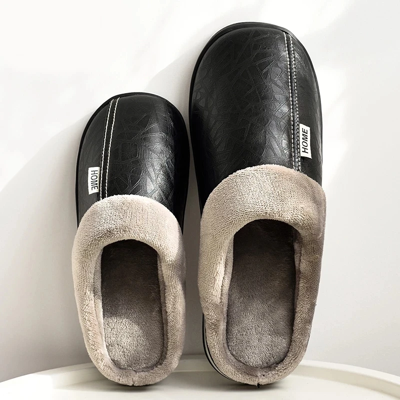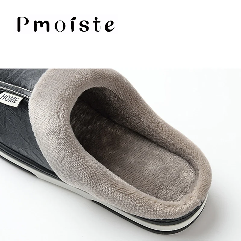 Зимние домашние тапочки; Мужские плюшевые кожаные домашние тапочки из водонепроницаемого материала размера плюс 11,5-15 Анти Грязный Теплые тапочки для дома с нескользящей подошвой