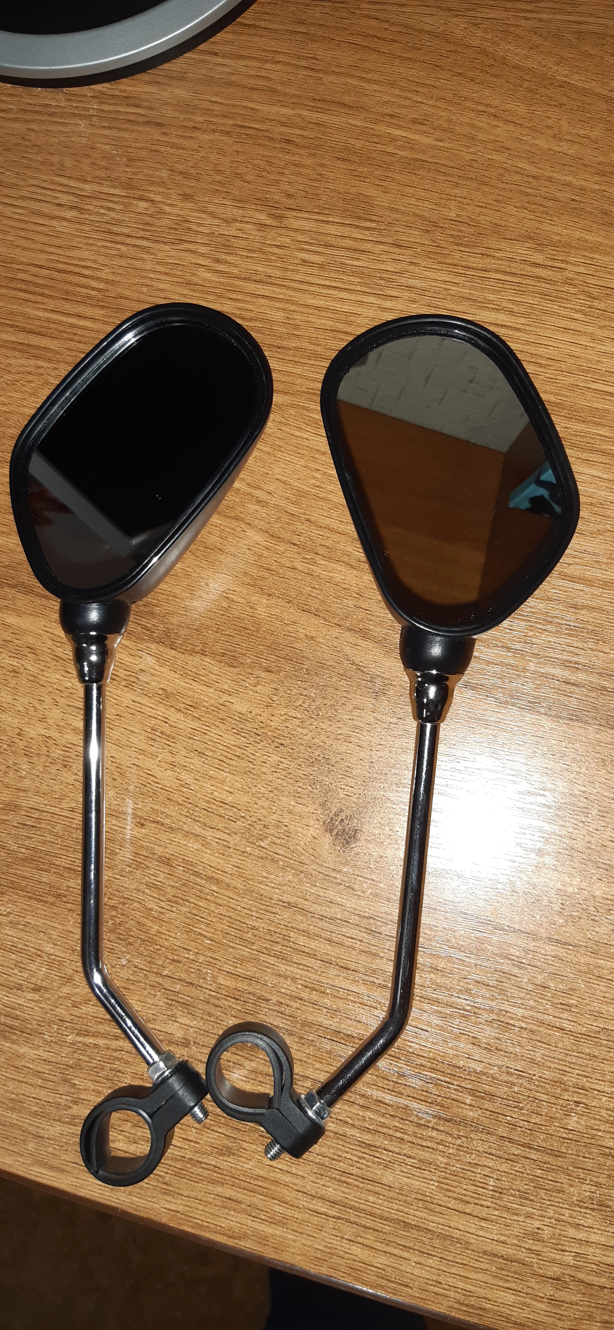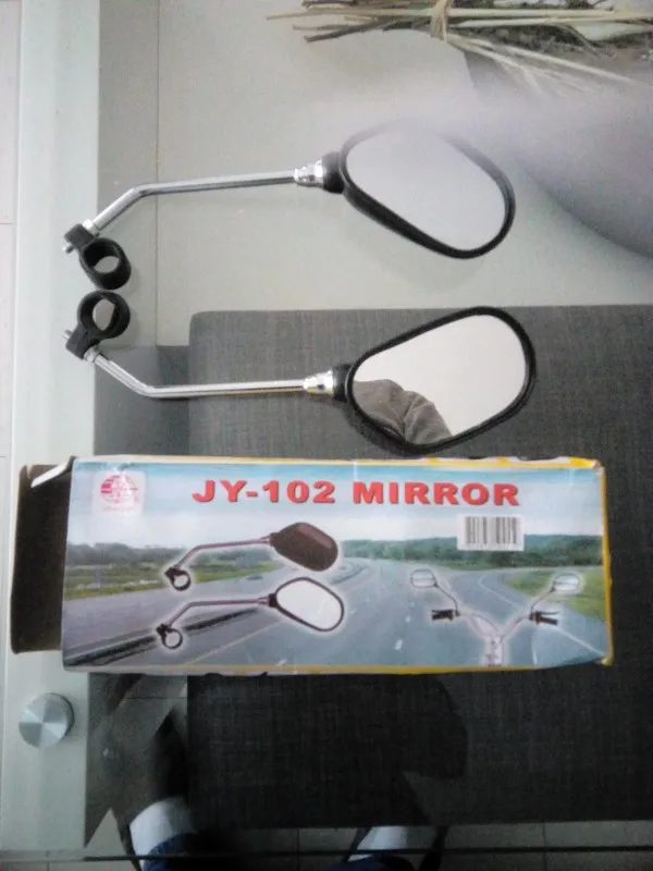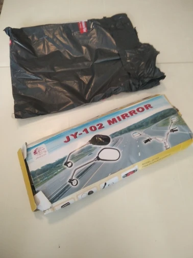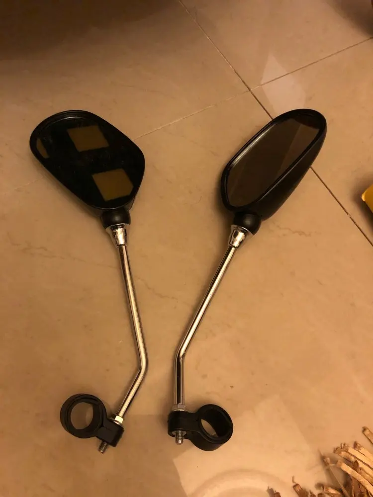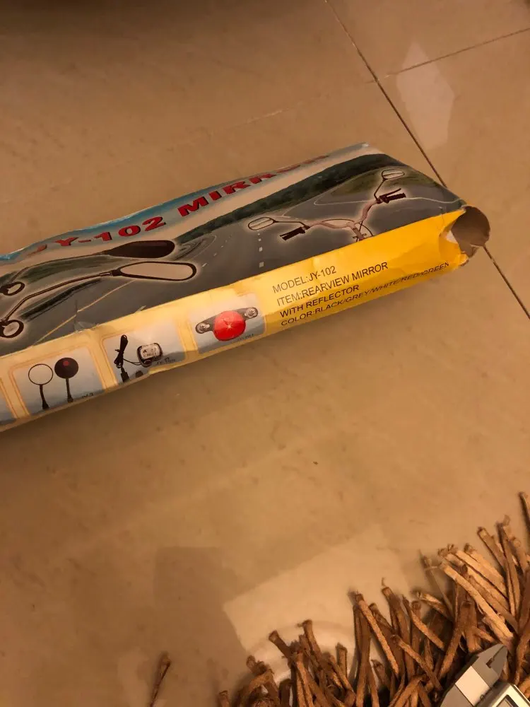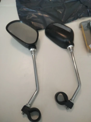 Зеркала в целом не плохие, только кольцо крепления на руль не внушает никакого доверия. Благо подходит в место винта крепления ручки тормоза. Сильно пыльные. Катафот отрабатывает хорошо. Как доехало живым не понятно. Коробка вся рваная и мятая в хлам. Упаковка пакет и всё.