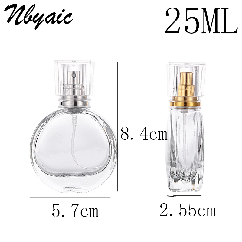 Прозрачный флакон для духов Nbyaic1Pcs25ml, портативный дорожный флакон с распылителем для духов, пустой флакон с распылителем из анодированного алюминия