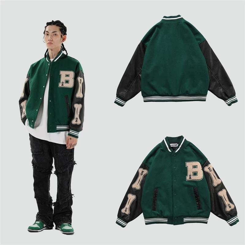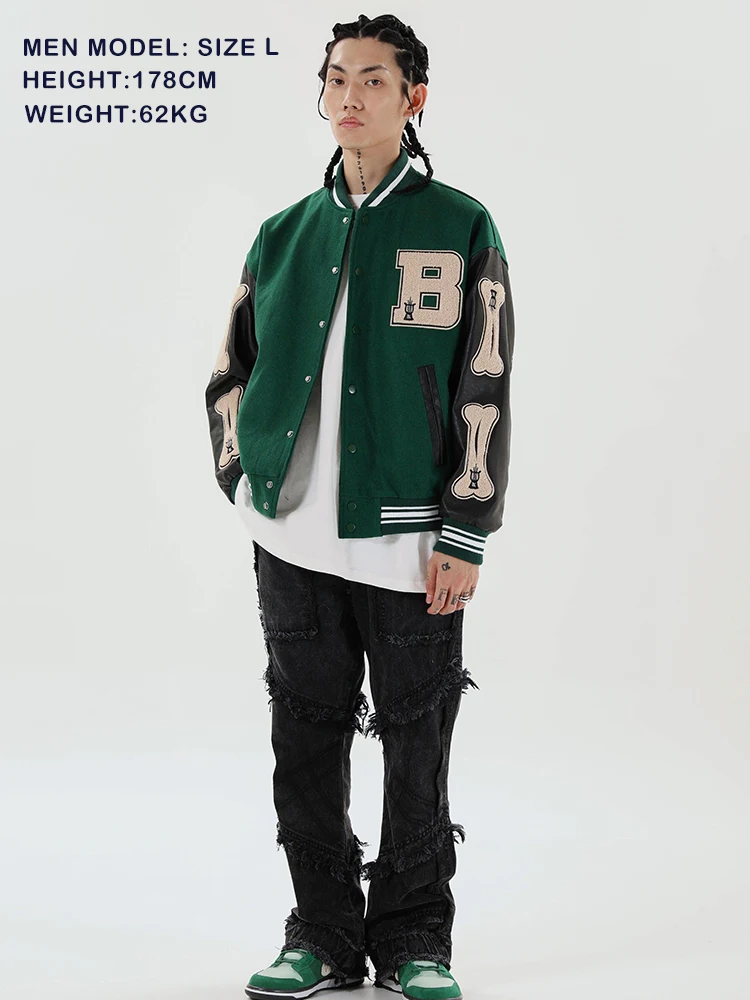 Пушистый Кости письмо бейсбольная куртка с рисунком; Пальто в стиле хип-хоп, пэчворк, с вышивкой уличная Колледж рок куртка 100% высокого качества