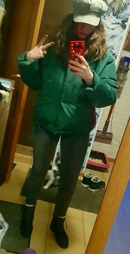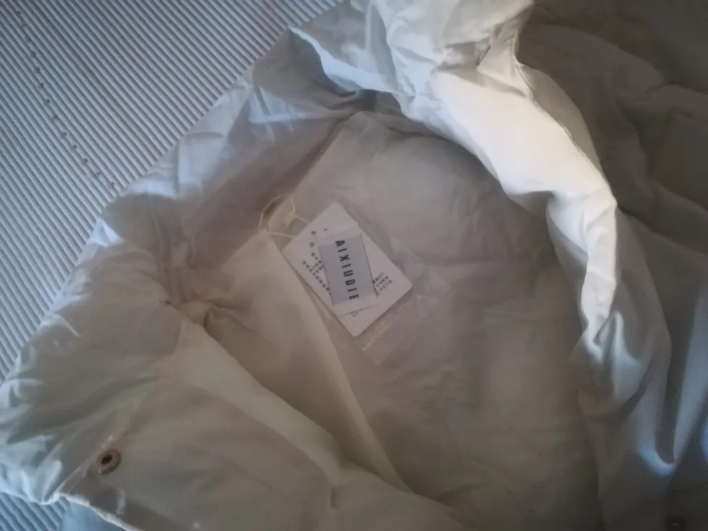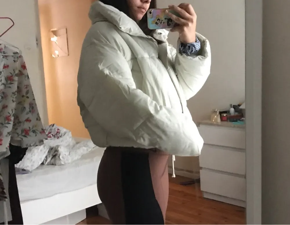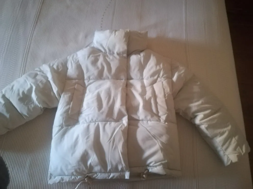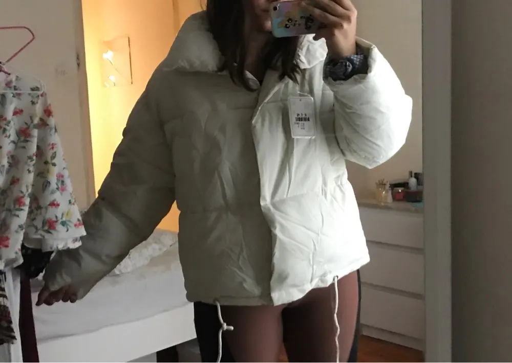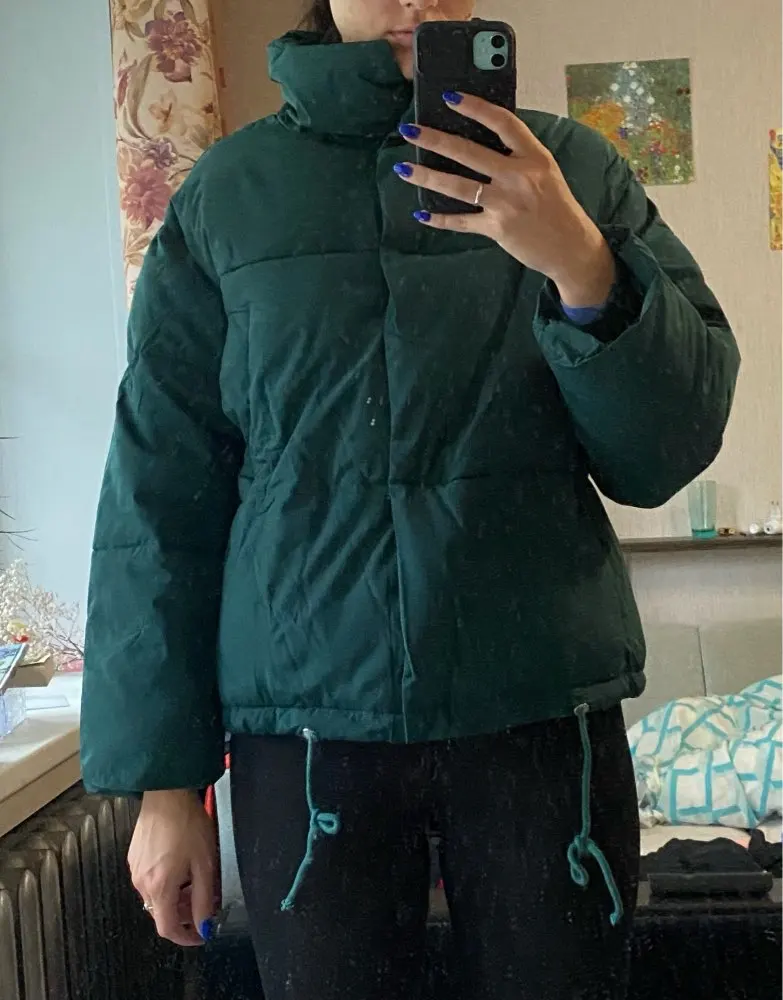 Куртка шикарная, хорошего качества, нигде ничего не торчит, но цвет вообще не белый! Он молочный с какой-то зелёной, очень расстроило, ведь искала именно белый пуховик