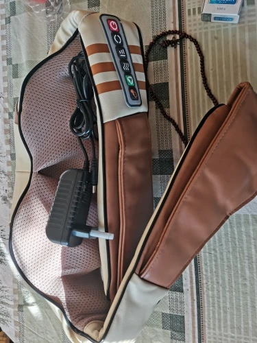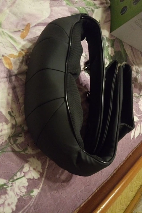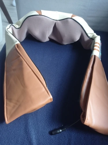 Уже второй такой массажёр покупаю для подарков. Себе покупала массажную подушку этой же фирмы. Материал приятный на ощупь (как нубук) кож.зам, следы от рук не остаются, запаха нет, аккуратно вшиты молния и сеточка где ролики. Жаль что с липучкой только черного цвета. Заказ доставлен быстро (ок. недели в Московскую область, доставка СДЭК подстроилась под мой график ). Коробка не мятая, всё аккуратно упаковано, бусики в подарок.
