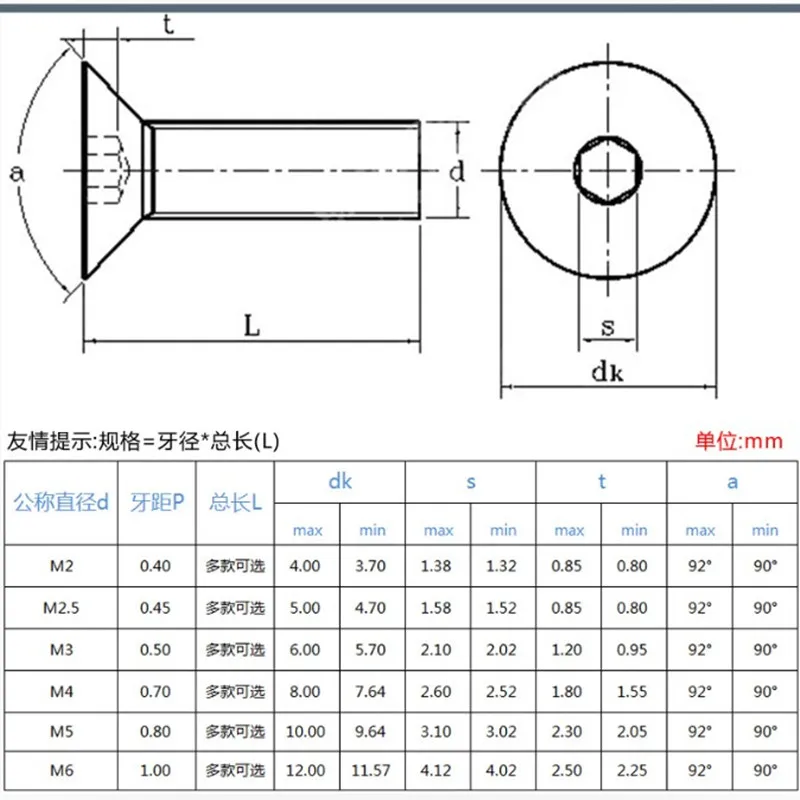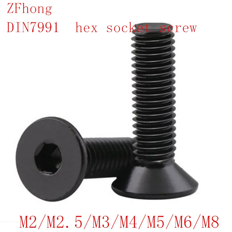 5-50 шт. Шестигранная головка DIN7991 M2 M2.5 M3 M4 M5 M6 из нержавеющей стали 304 или черная Шестигранная головка с плоской потайной головкой