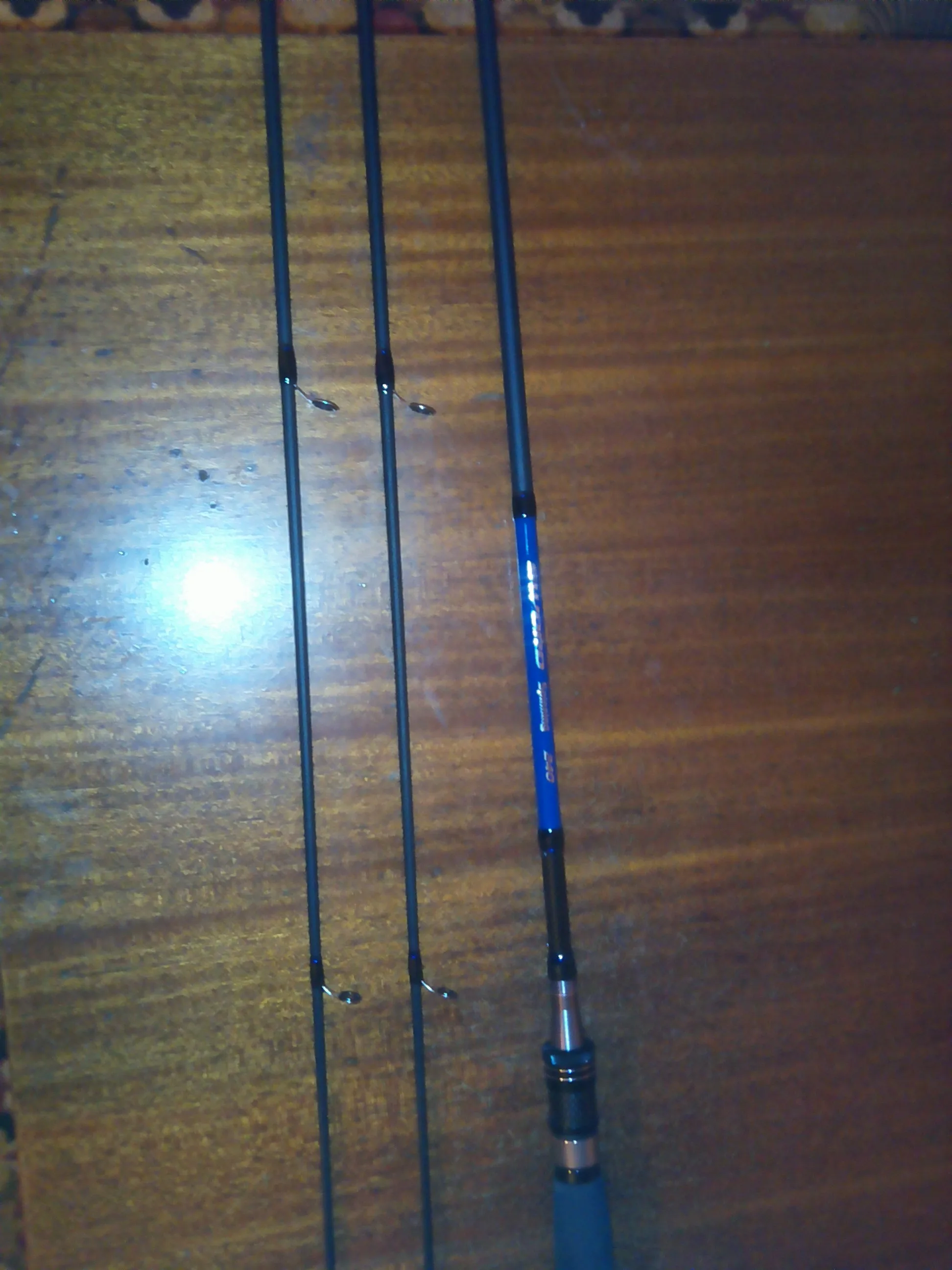 Прибыл через 5 дней. Палка великолепная за такие деньги. 2 вершинки разного строя М;МЛ. . Сам спининг довольно жесткий, думаю бросать будет далеко. Кольца пролачены хорошо. Сам спининг матовый..