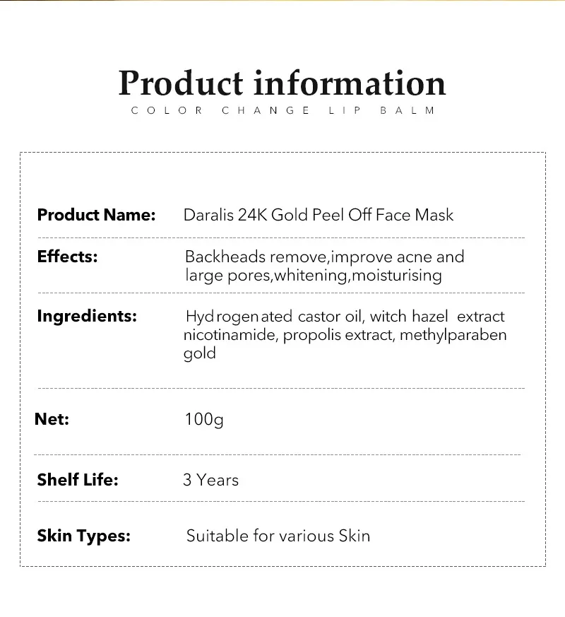 Daralis 100 г Золотая разрывная маска для лица, маска для удаления черных точек, отшелушивающая нос, омертвевшая кожа, чистые поры, уход за кожей лица