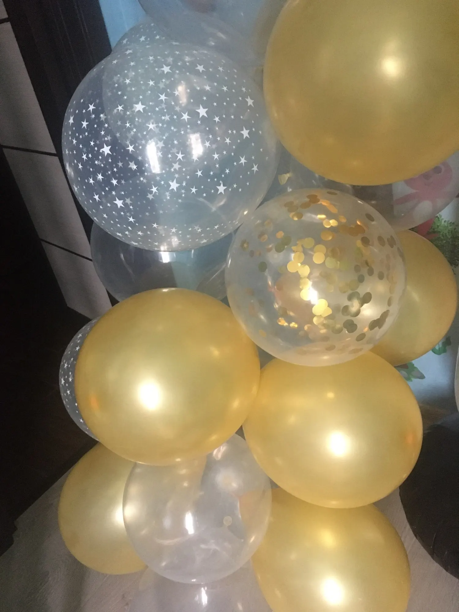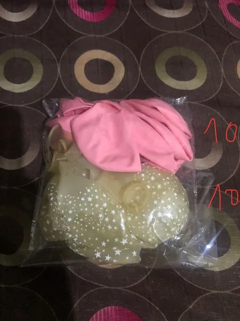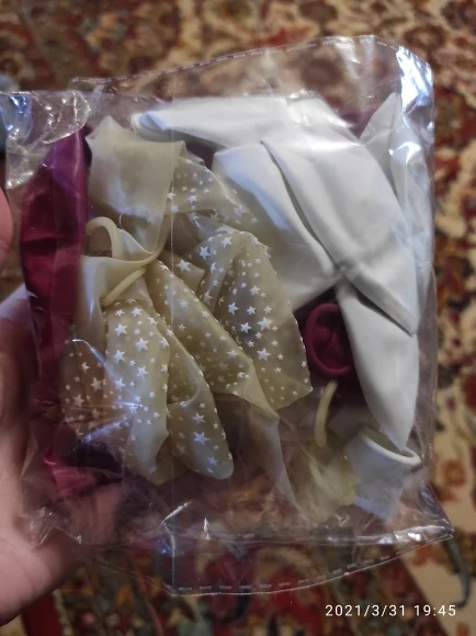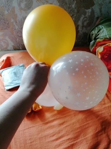 Товар пришёл быстро, все шары в целости, но на шарах со звездами, к сожалению не везде или с дефектом напечатан рисунок.