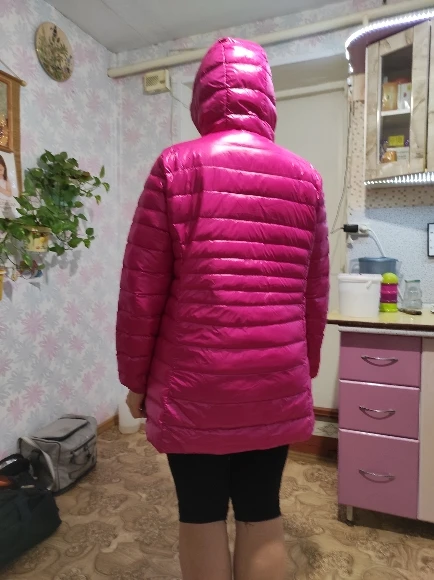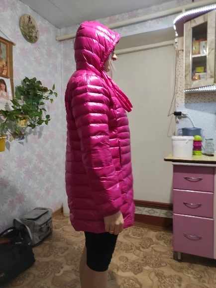 Пуховичок лёгкий, удобный, сшит хорошо. Можно купить реально большой размер, на мой 52 размер 7xl сидит свободно, но я рада, обычно все маломерит, а тут можно свободно двигаться и одевать снизу очень толстый свитер. Я довольна.
