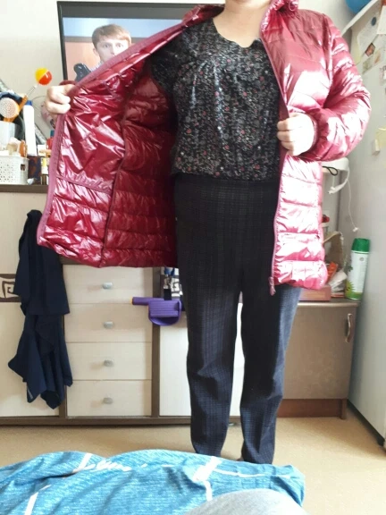 Заказываю уже второй,этот пуховик заказала на размер больше,что-бы одевать на тёплую кофту.Очень лёгкий,комфортный,единственный минус,лезет пух,но кто покупал в юникло,говорят та-же проблема.Да ещё приходится немного ушивать в бёдрах.6xl -на56 размер.