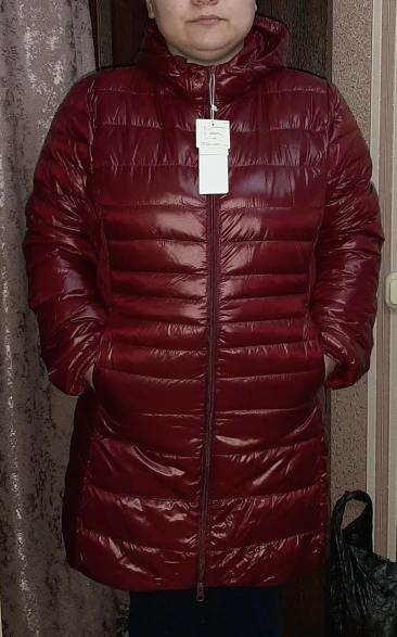 товвр пришёл быстро,курточка маме понравилось на 56р.,на спине немного сбориться когда застегнута,но это зависит от того какая у кого попа,можно было на размер больше,чтоб чуть свободнее была.на чёрных вещах остаётся пух.в общем товаром довольны.