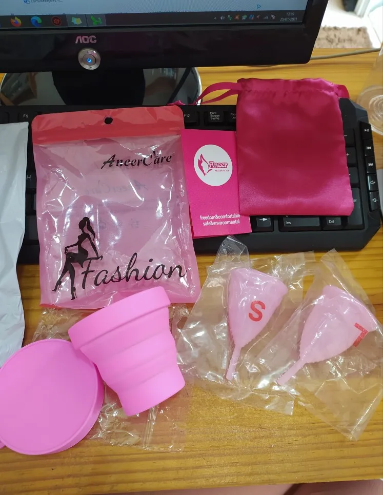 Chegou em 25 dias no meu endereço, veio super bem embaladinha, dois tamanhos de copo e vieram os 4 itens da foto além de um encarte com explicações, o silicone super resistente maleável na medida. Amei a compra e super indico.