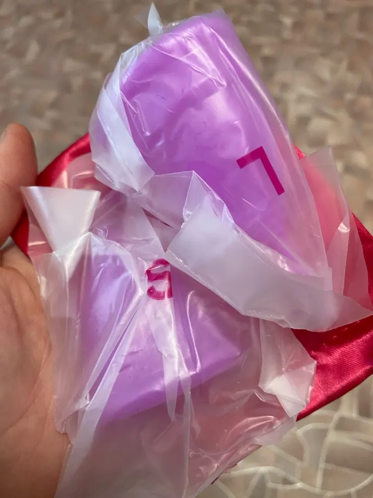 Выглядит хорошо, есть мешочек атласный и пластиковый для хранения. Каждая чаша упакована индивидуально, прям запаяна. Ещё не пользовалась. Потом добавлю отзыв