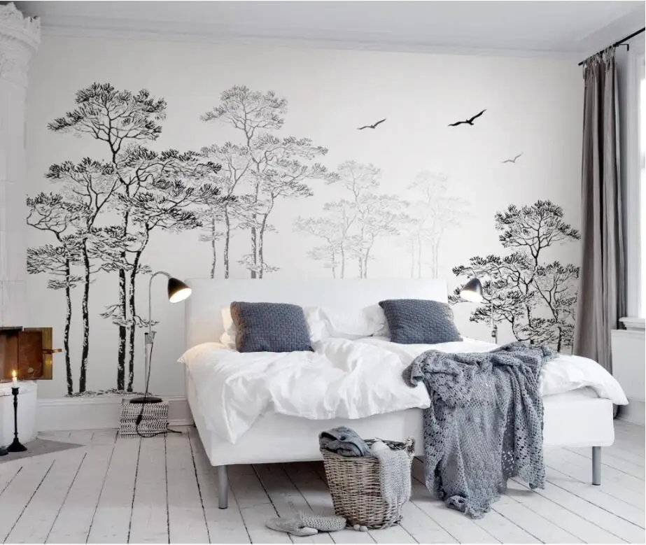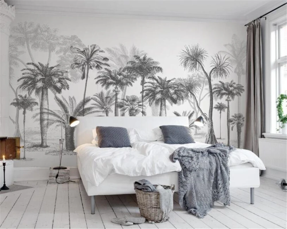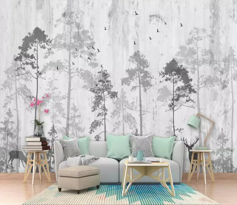 Обои на заказ с черно-белыми деревьями и лесными фресками, домашний декор для гостиной, спальни, телевизора, фоновые 3d обои