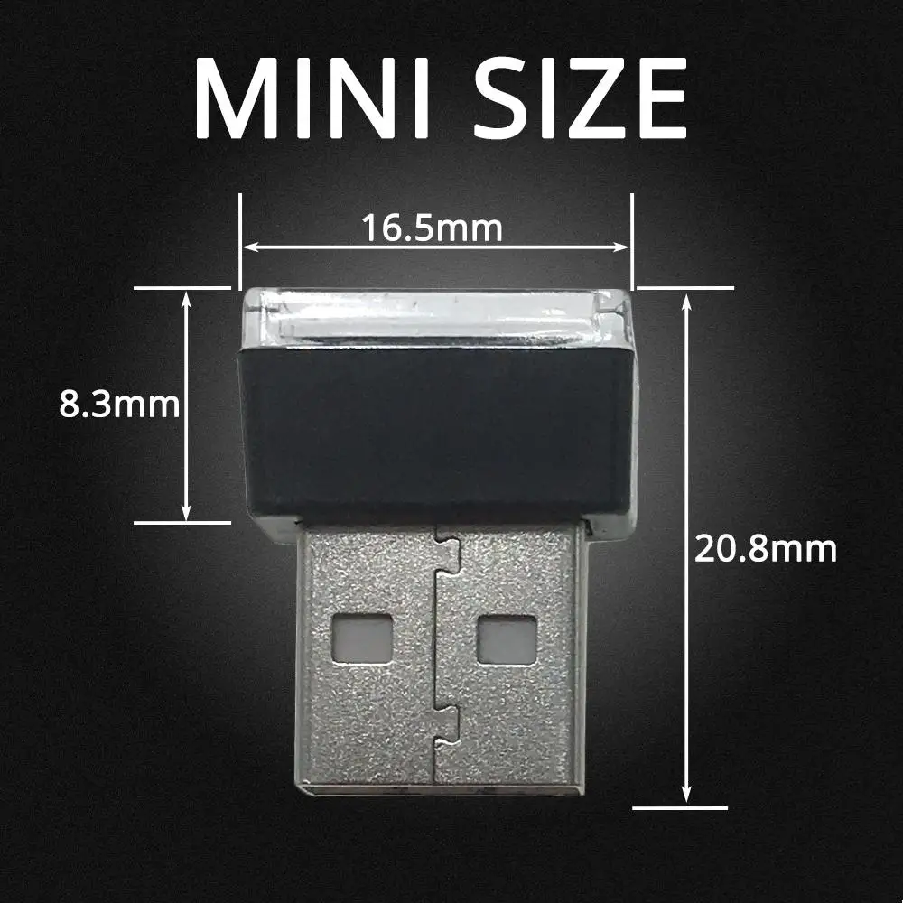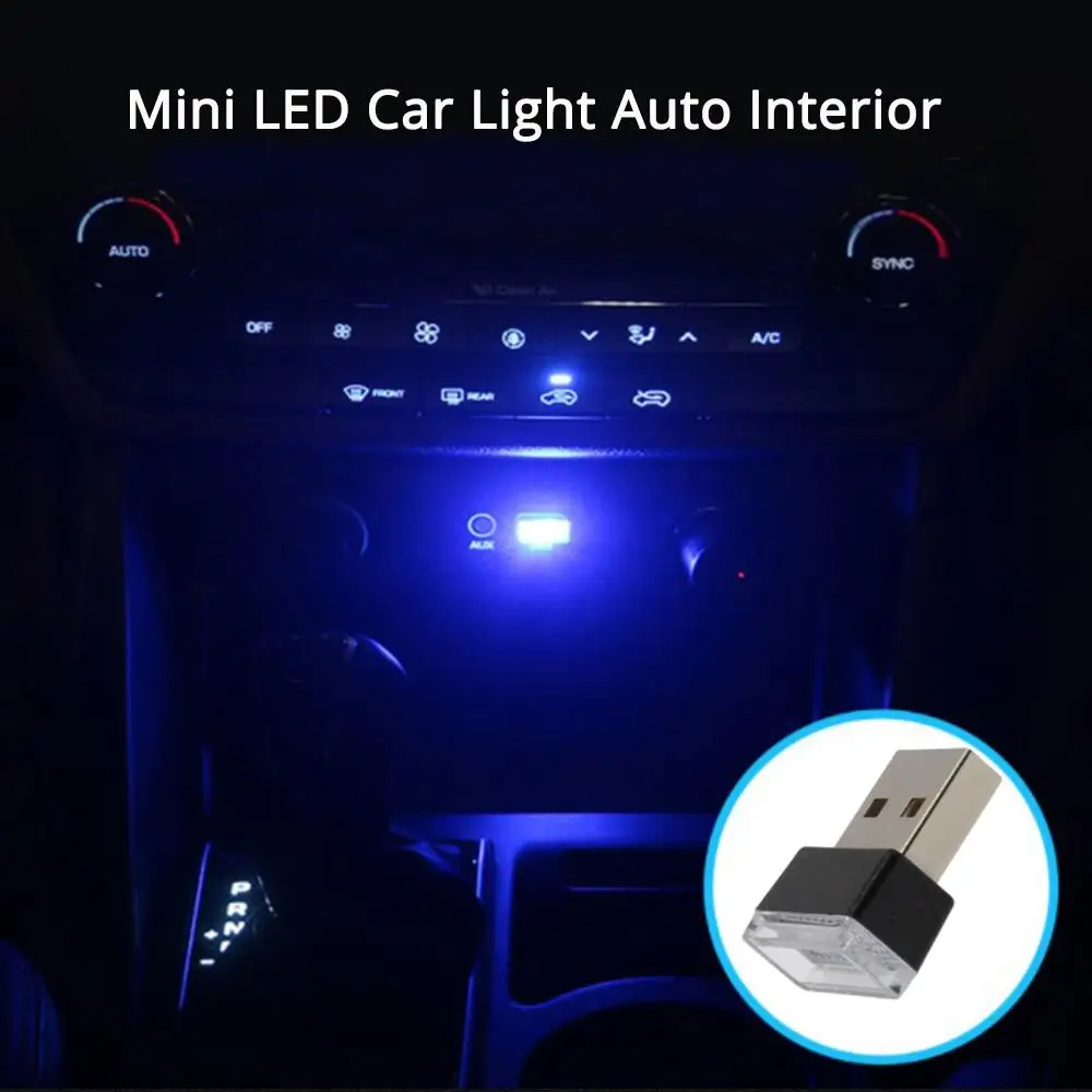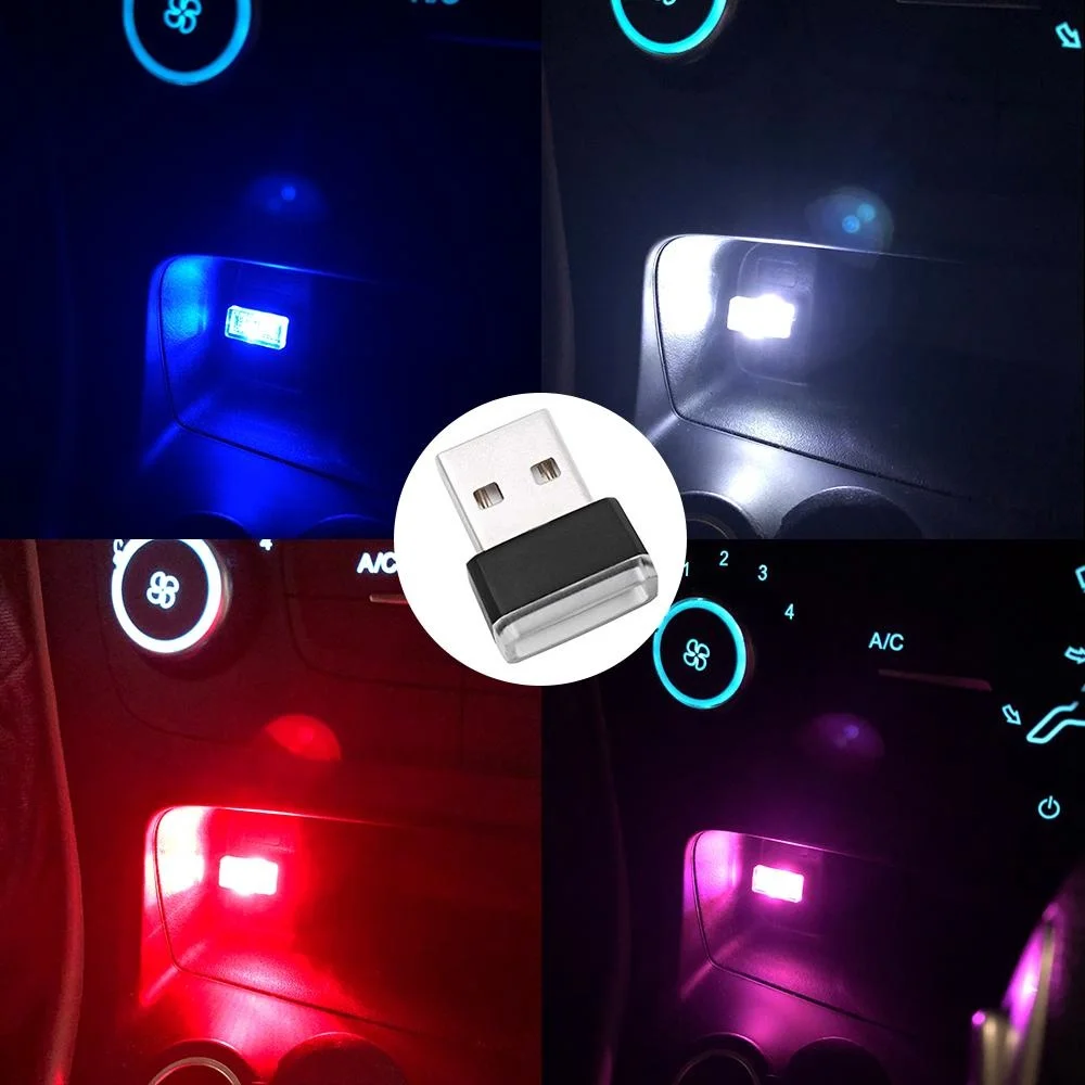 Мин Авто USB светодиодный атмосферсветильник декоративная лампа авто аварийсветильник Универсальный ПК портативный Plug and Play красный синий белый розовый