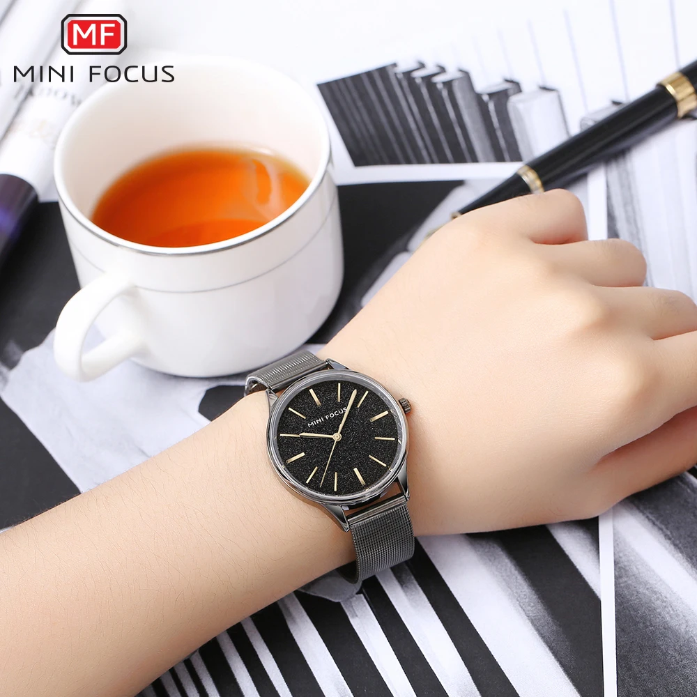 Роскошные брендовые модные женские часы MINI FOCUS, женские часы, женские кварцевые наручные часы, сетчатые стальные часы