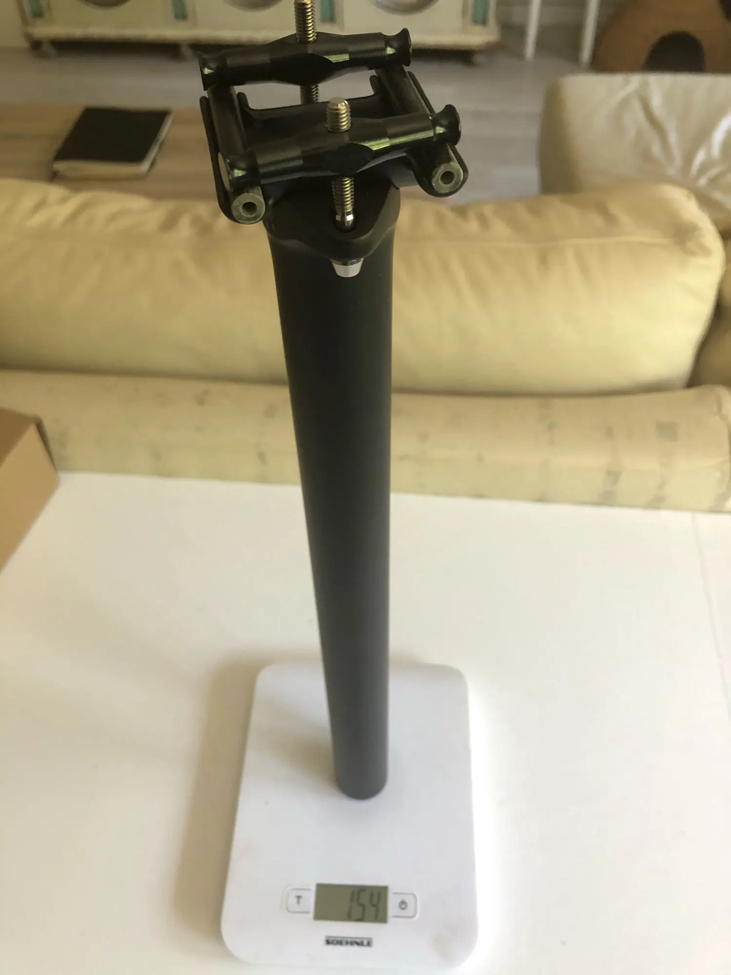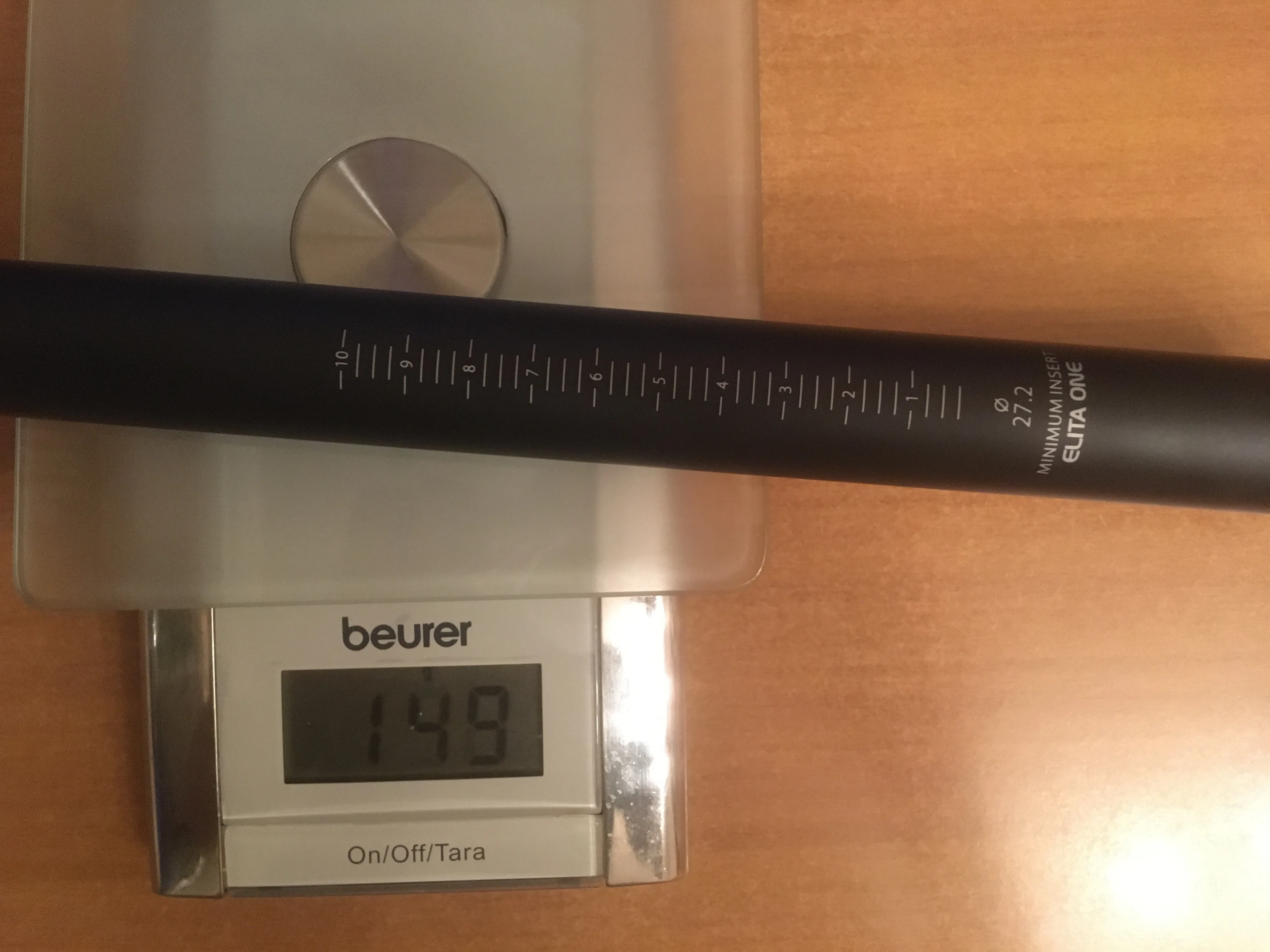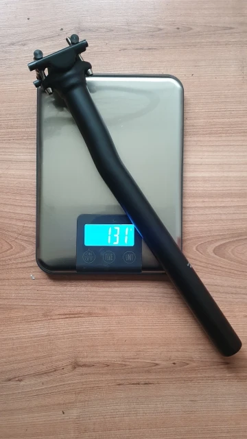 Отправлено и получено быстро. Стойка сиденья выглядит превосходно. 150 г для 27,2 мм и 350 мм. Легко крепится к велосипеду. Пока все хорошо.