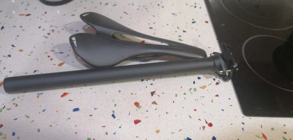 Ладно, как я и ожидал, выглядит хорошо, несмотря на то, что он говорит, единственным недостатком является система крепления для седла, в первый раз он скользит, его нужно хорошо затянуть, Я не знаю, будет ли это рекомендовано для углеродного седла