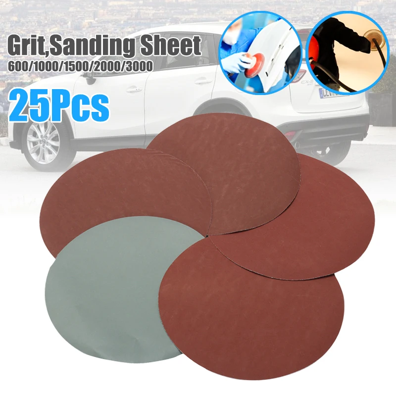 Шлифовальные диски 150 мм6 дюймов, зернистость 6001000150020003000, круглая наждачная бумага на липучке, Смешанная полировкаочистка, 25 шт.