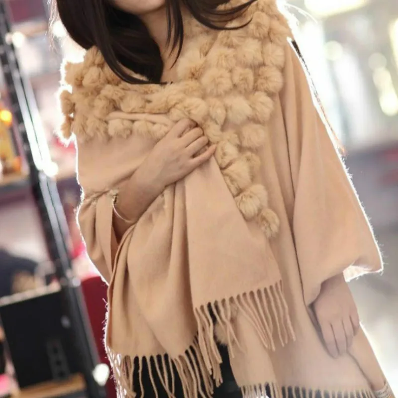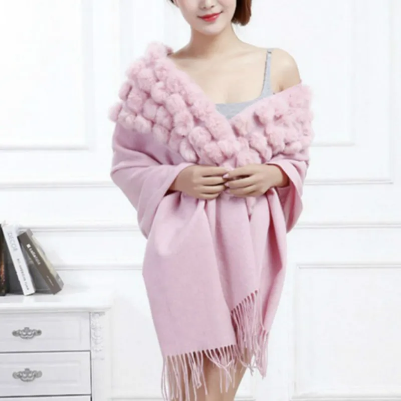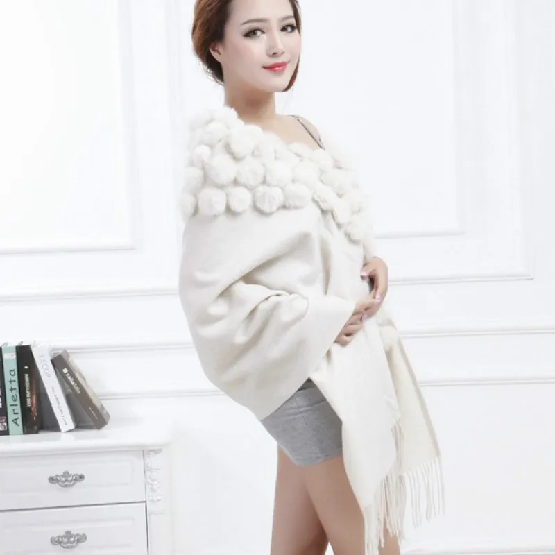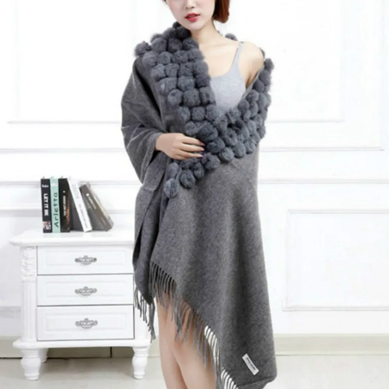 Роскошный кашемировый шарф, шерстяная шаль, кроличья шерсть, шарики из искусственного меха норки, треугольные 120 шт. 3D шаров, Подарочная Пашмина, шарфы, свадебная шаль
