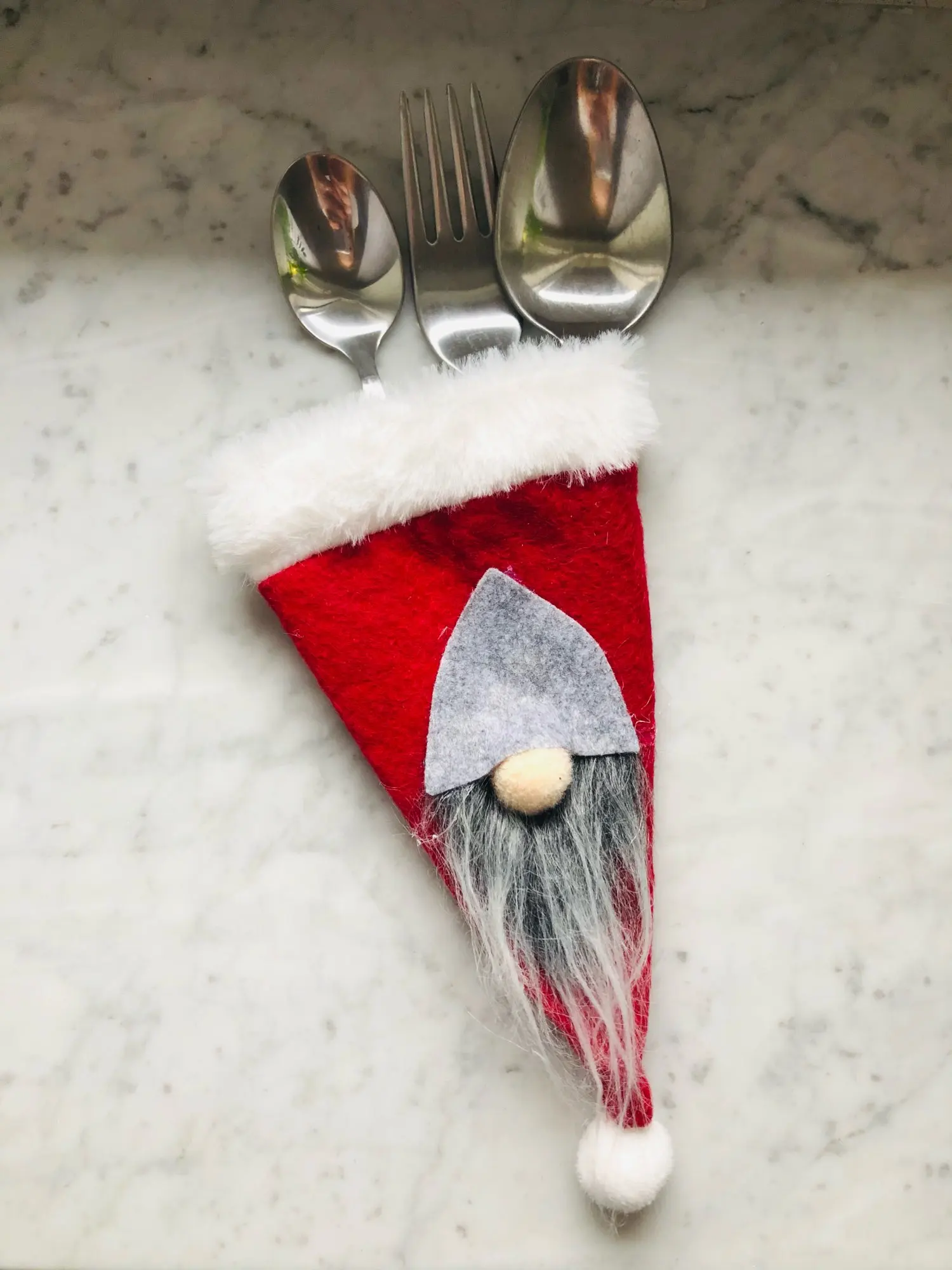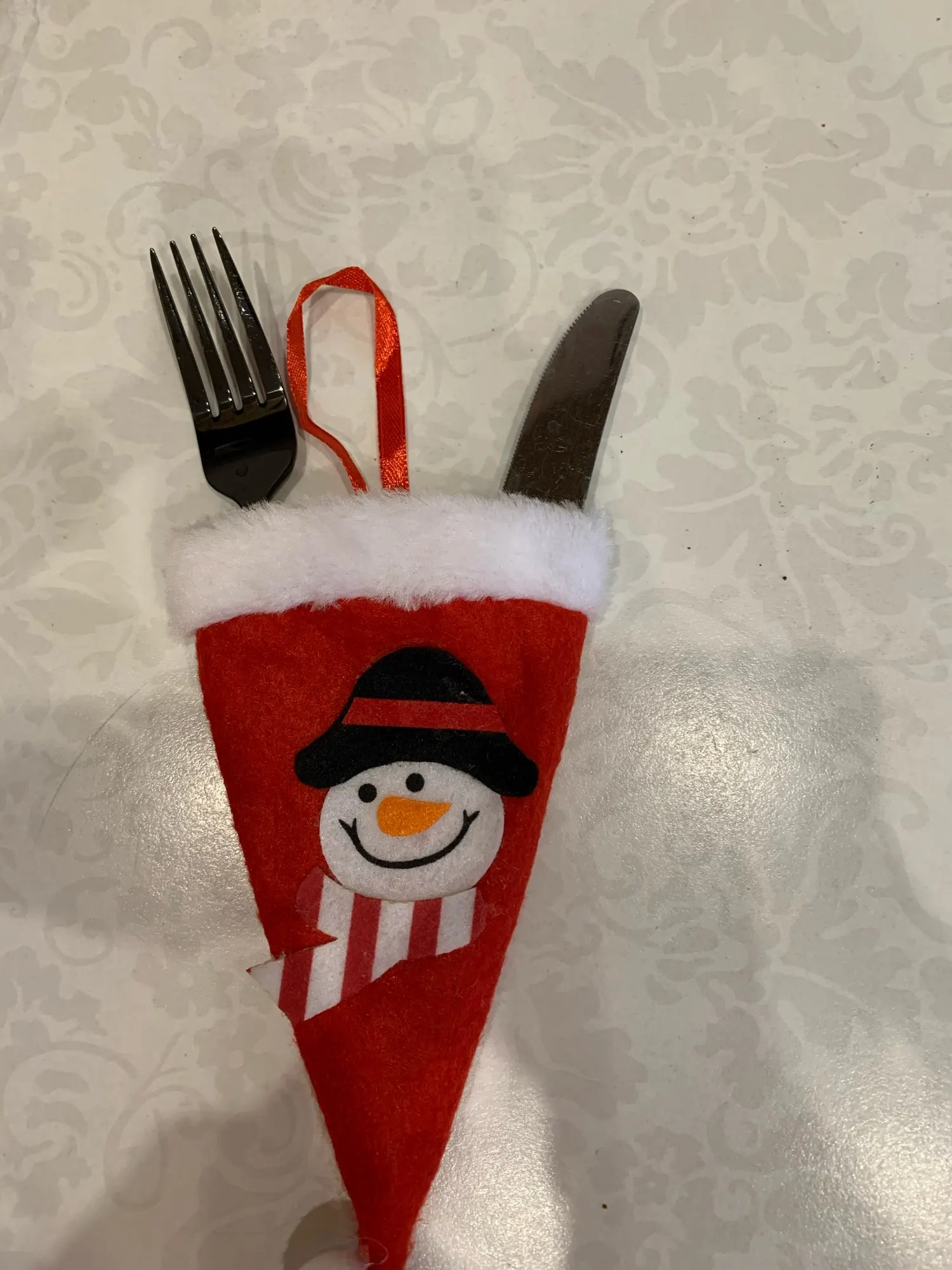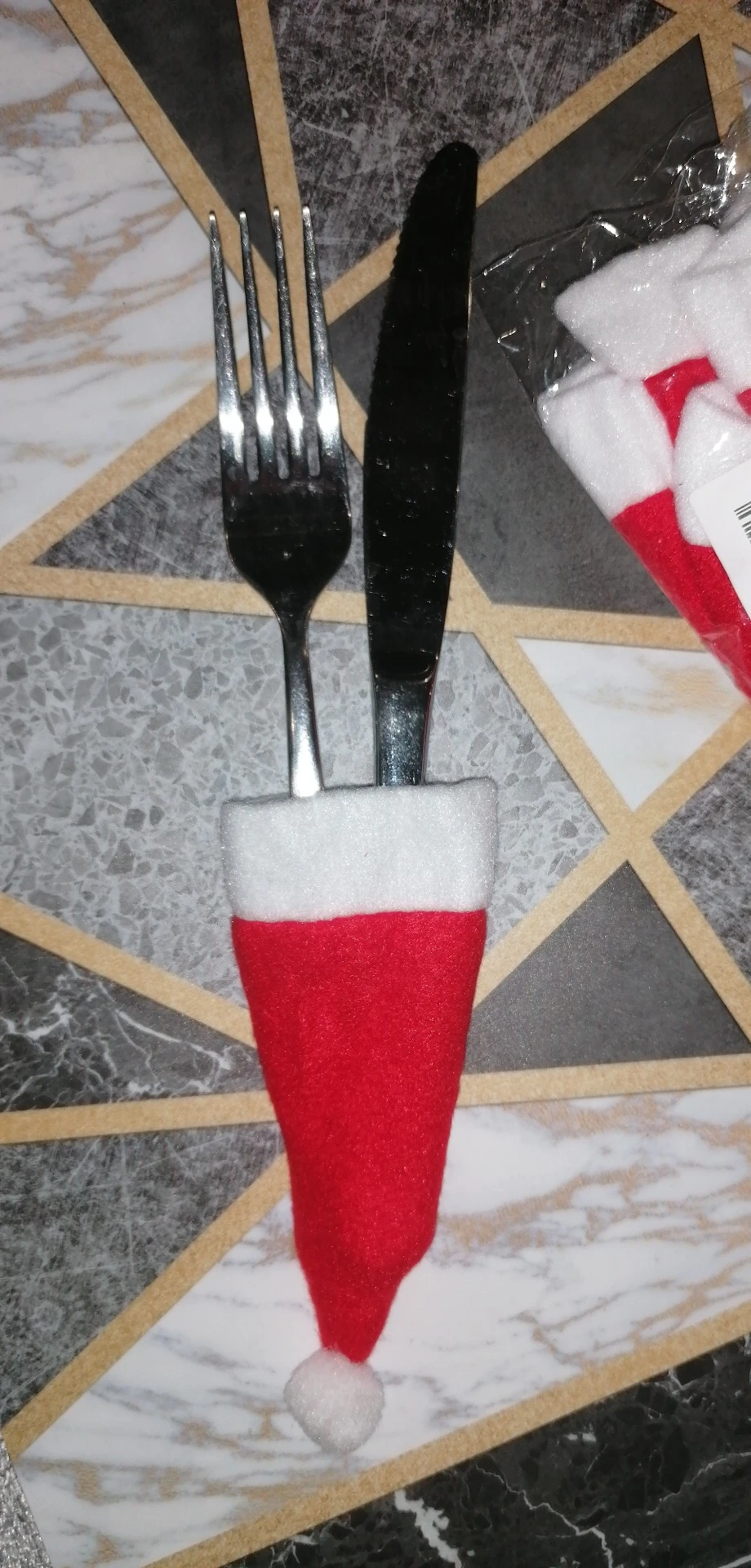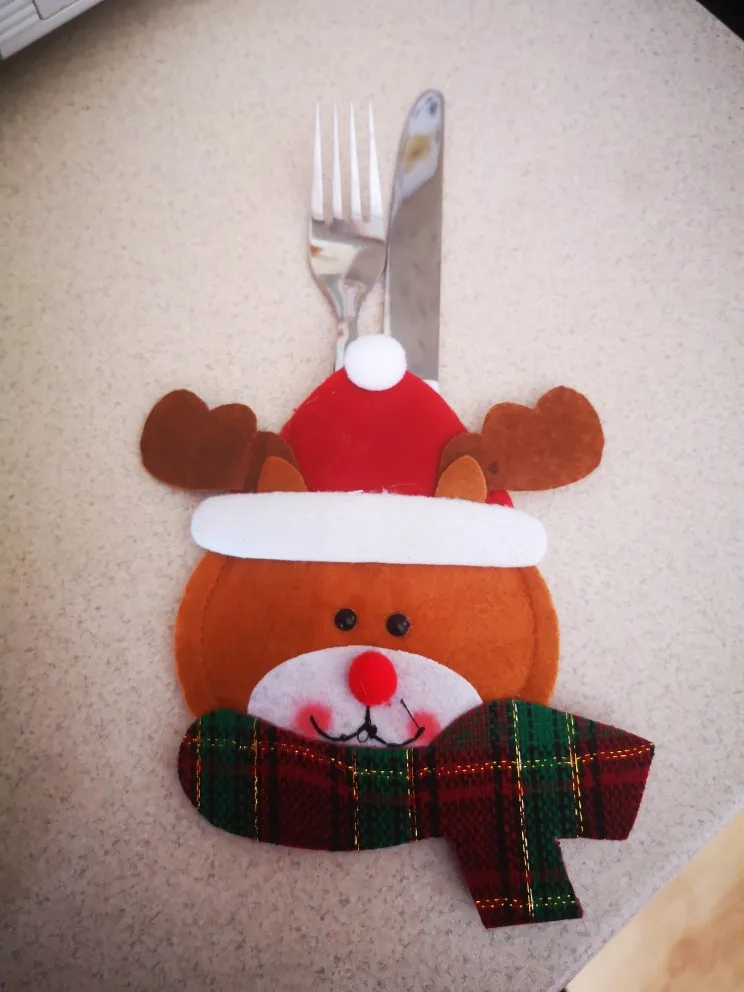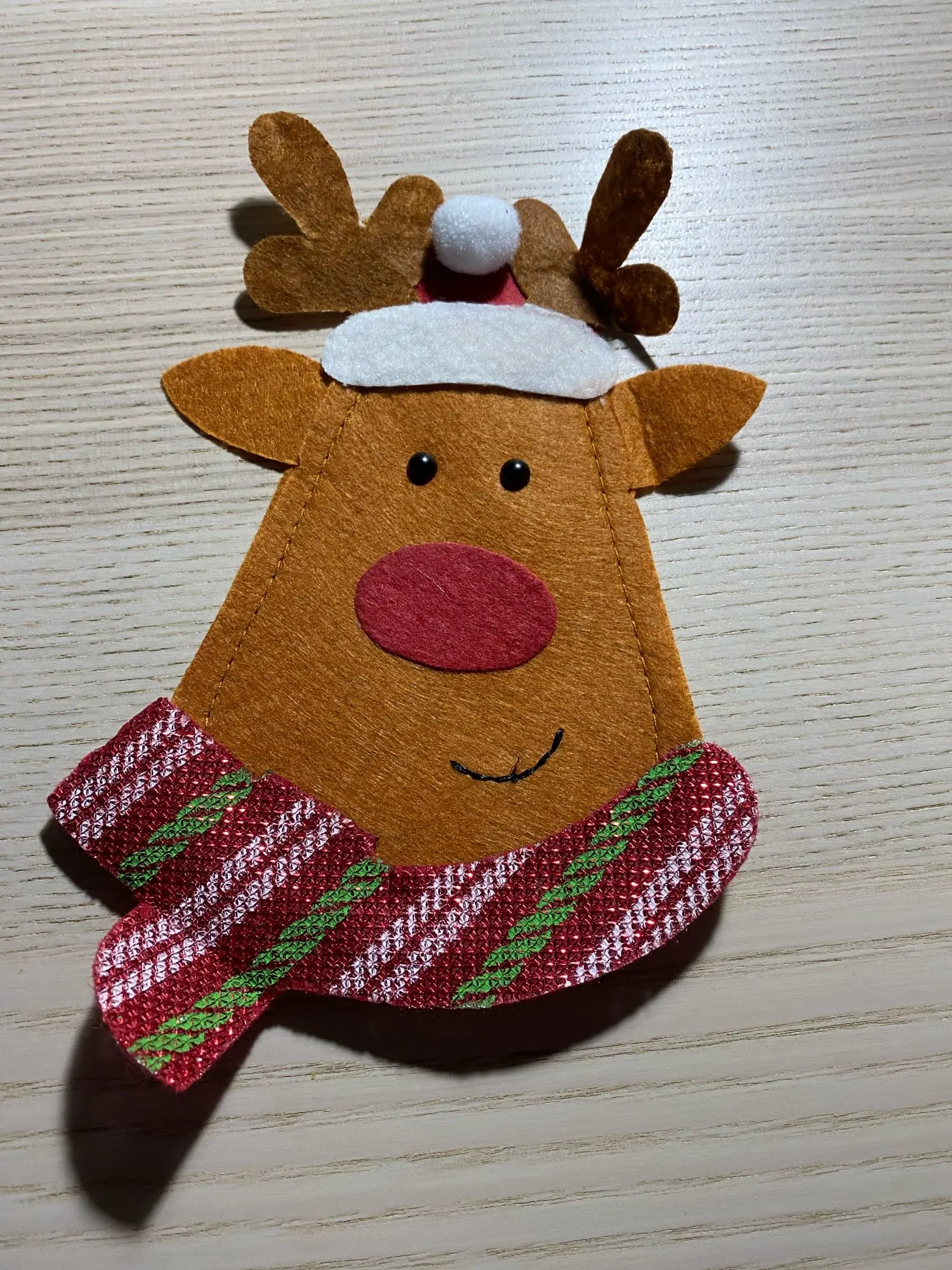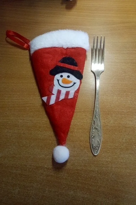 Рождественский новогодний карман в виде шапки Санты, оленя, вилка, нож, столовые приборы, сумка-держатель, украшение для стола, столовой посуды, 62419