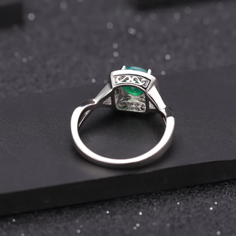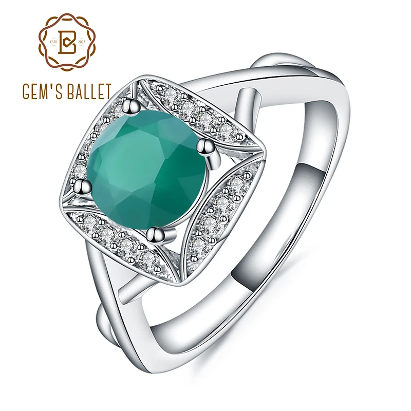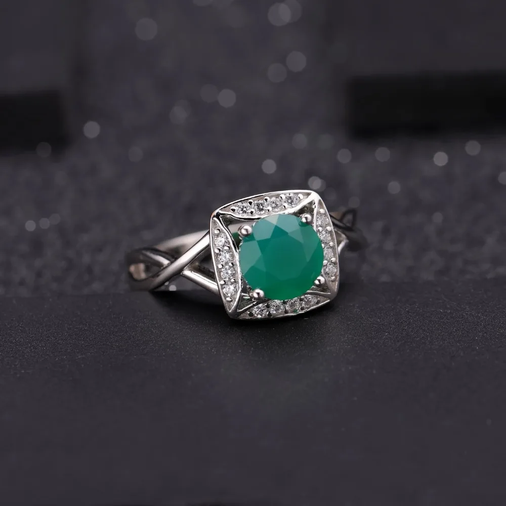 Женское кольцо из серебра 925 пробы с натуральным зелёным агатом