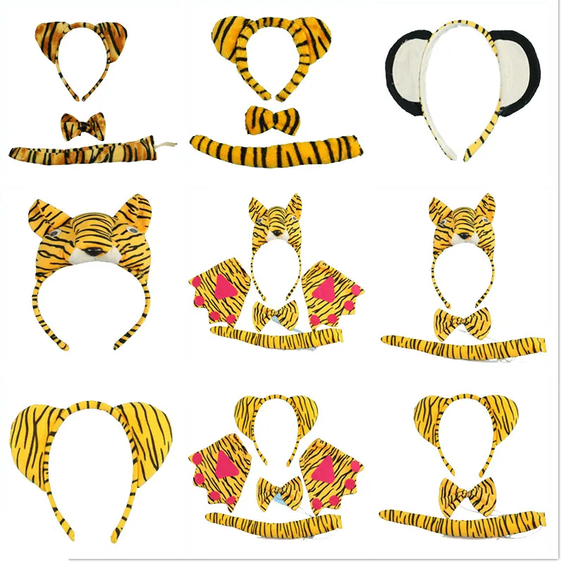 Детская повязка на голову с ушками животных для вечевечерние для мальчиков и девочек Тигр кошачий хвост галстук-бабочка для вечерние ринки детский день рождения Пасхальный костюм для косплея