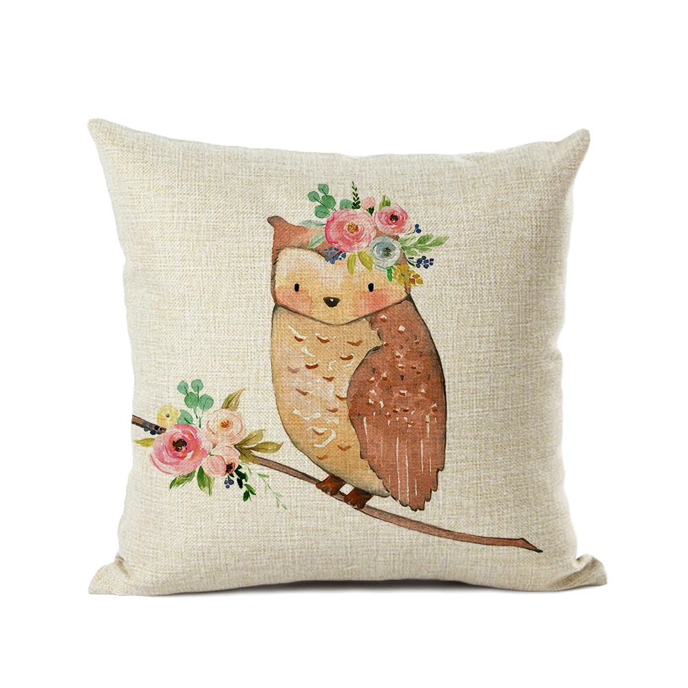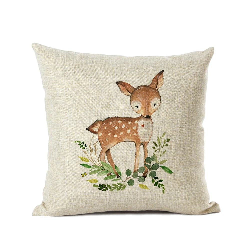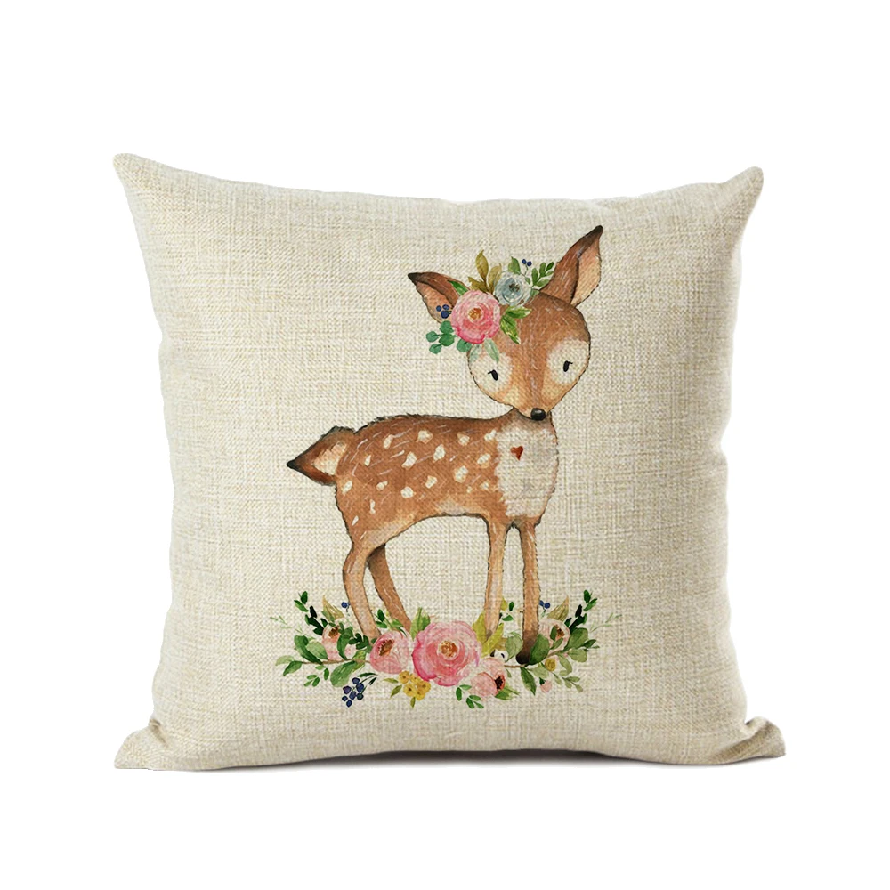 Милые розовые цветы, Мультяшные лисы, медведь, Сова, олень, украшение для комнаты девочки, Наволочка на подушку, хлопковый льняной милый чехол для мальчиков