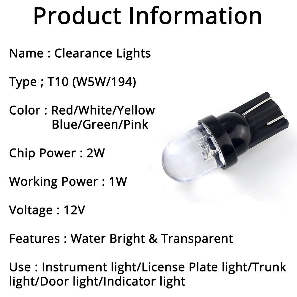 2X T10 W5W светодиодный 1 светодиодный светильник для приборной панели лампа белый/красный/синий/желтый/зеленый/RGB (вы можете выбрать то, что вам нужно)