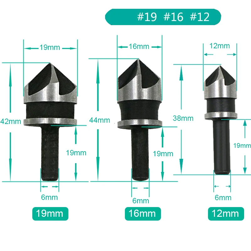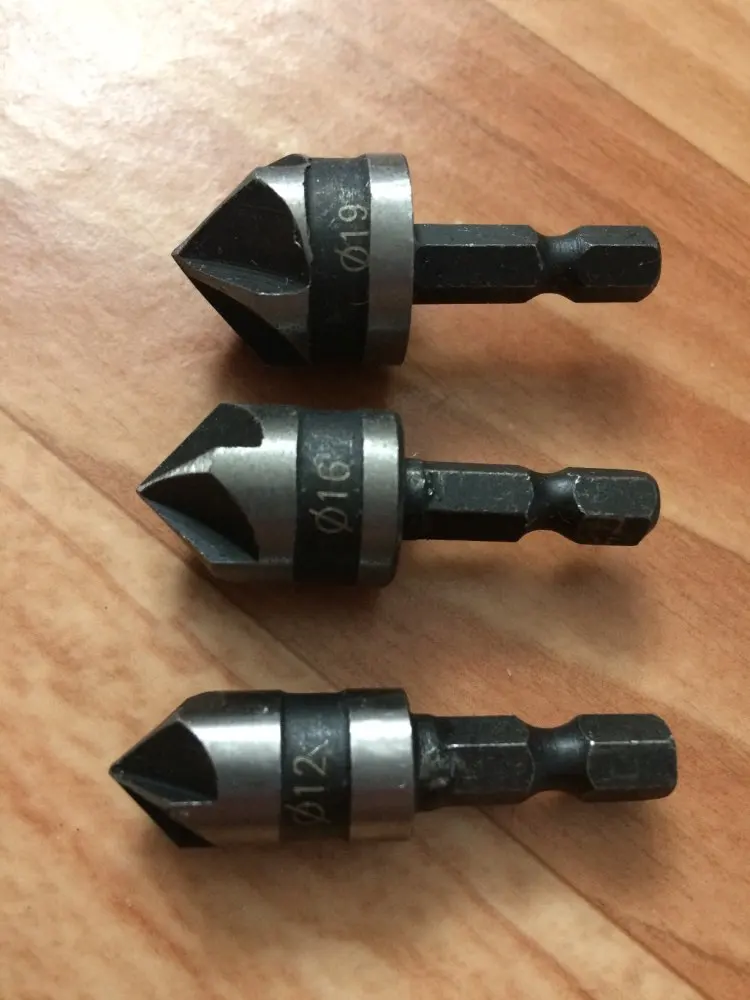 Я получил три сверла с потайной раковиной, как описано поставщиком. Они выглядят хорошо сделанными и интересными