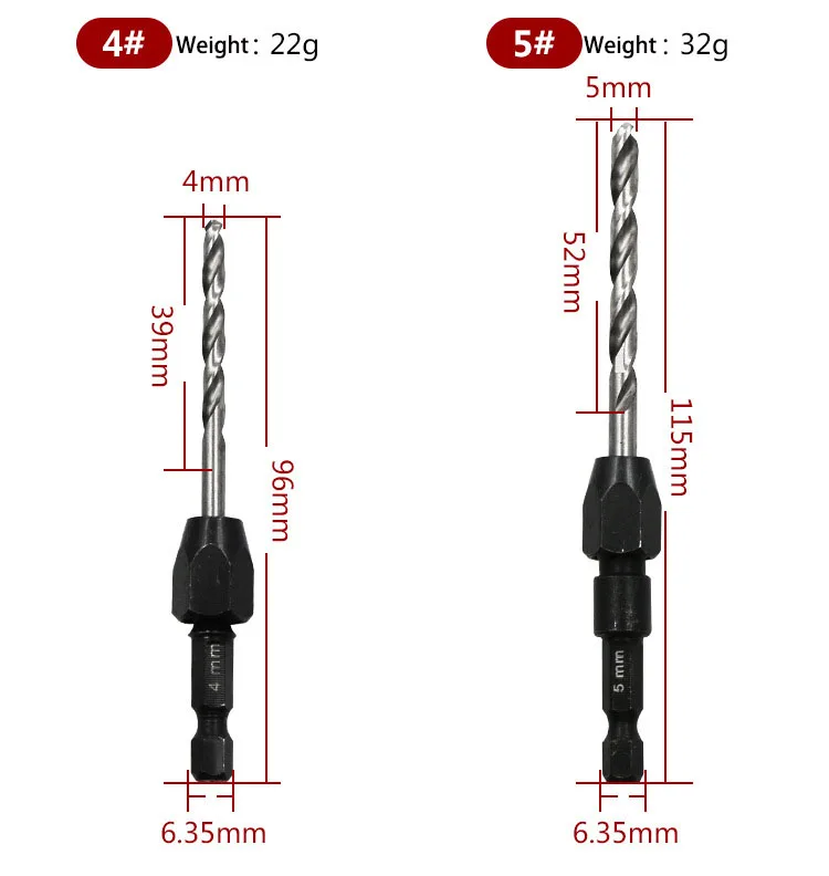 Набор быстросменных сверл, 5 шт., Быстросменные сверла из быстрорежущей стали HSS 6542 с шестигранным хвостовиком, от 2 мм до 6 мм