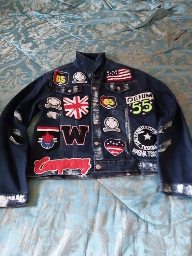 Мужская джинсовая куртка Sokotoo с нашивками в виде флага черепа и надписей раскрашенная облегающая курточка с длинным рукавом верхняя одежда