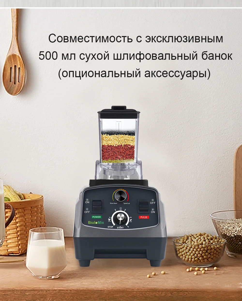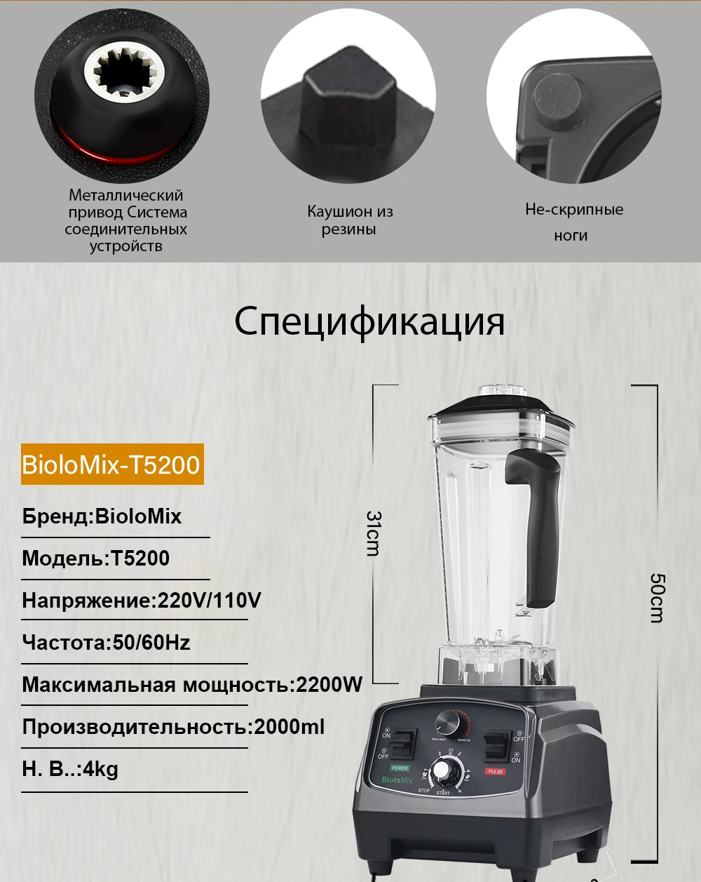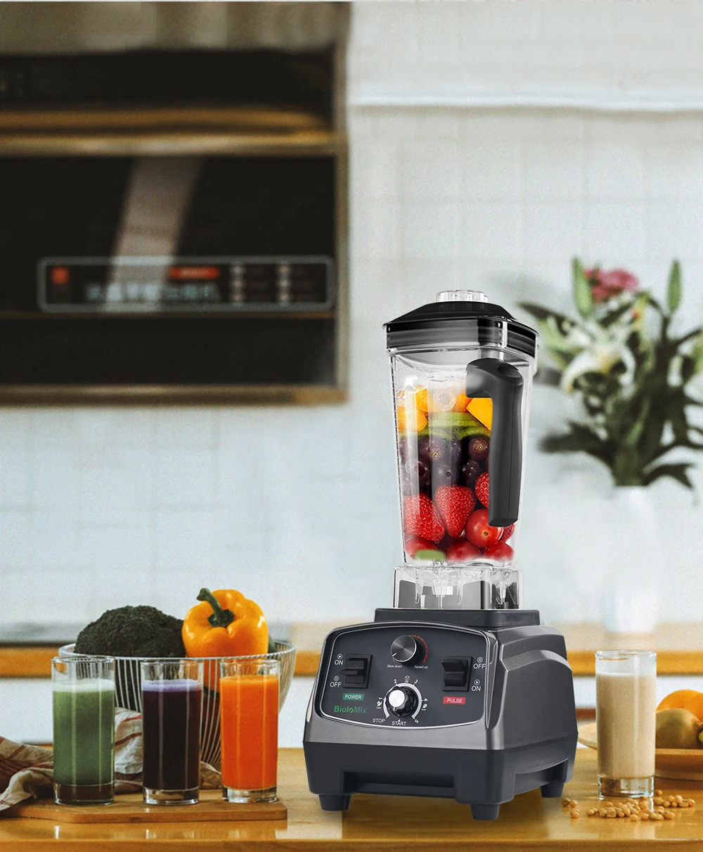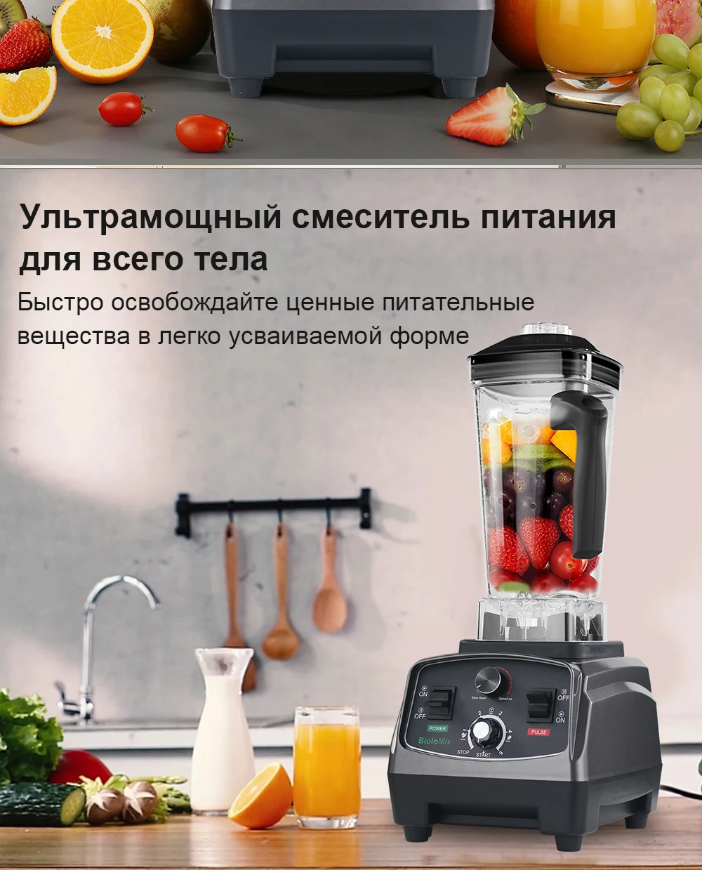 Сверхмощный блендер BioloMix 3HP 2200 Вт с таймером, миксер, соковыжималка, комбайн для фруктов, холодных смузи, без БФА, с ёмкостью 2 л